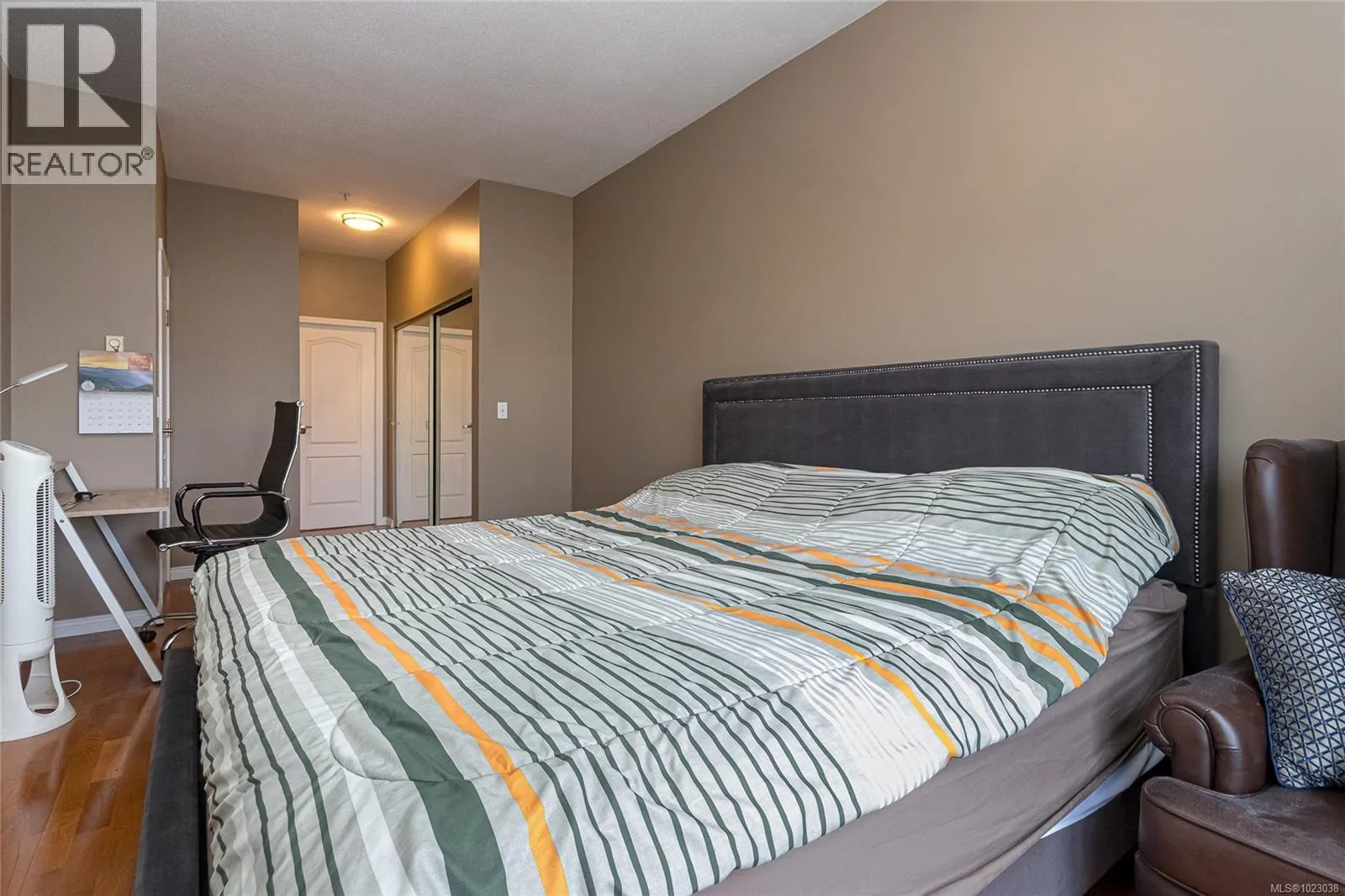 Very spacious two bedroom, 2 full bathroom condo in well run ”Sterling Court”. Top floor unit with 9’ceilings, 2 skylights and a gas fireplace. Master bedroom fits a king sized bed and more furniture. Second bedroom is very good size too. Laundry room has space for shelving. Two parking spaces and a storage locker.