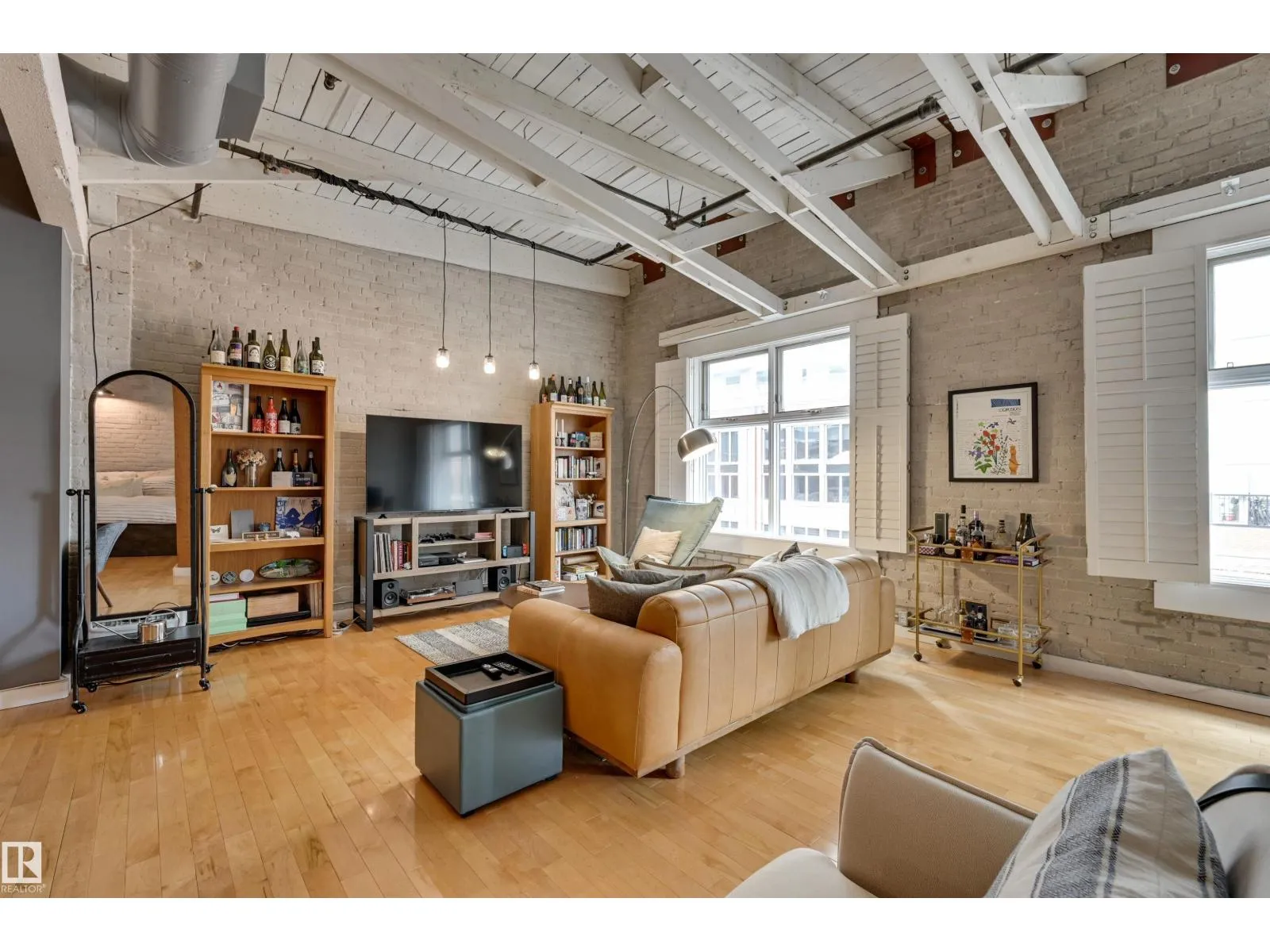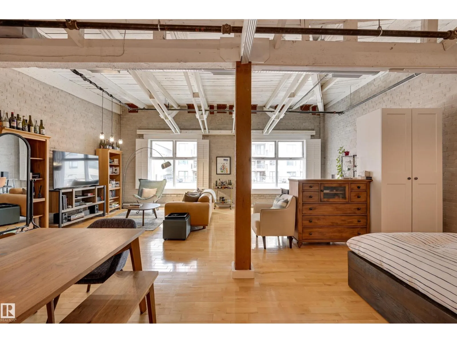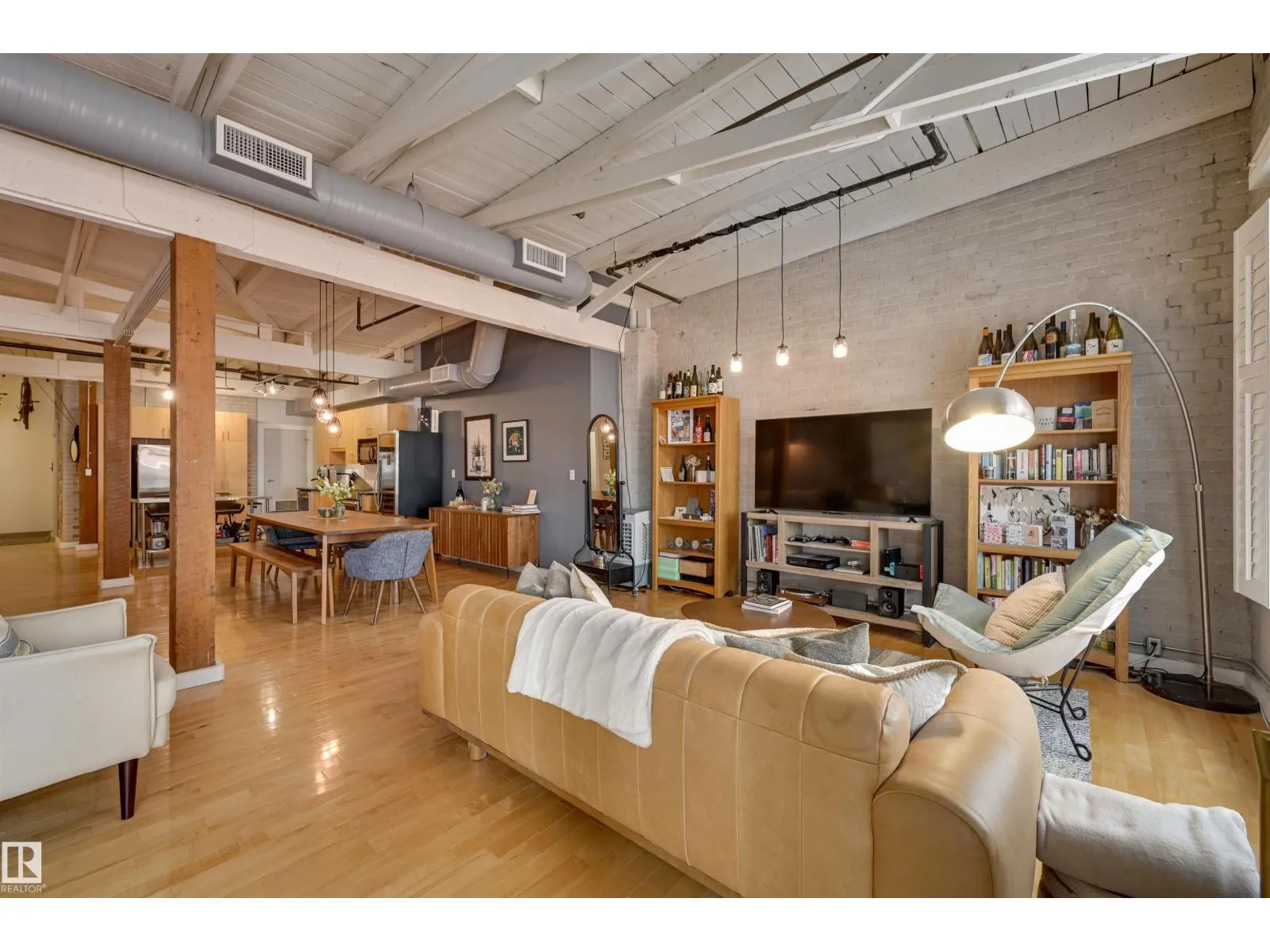 +"PublicRemarks": "Quintessential Downtown Loft with Amazing Exposed Brick and Wood! This beautifully open concept and modernized one bedroom and den has been upgraded throughout boasting gleaming hardwood floors, custom built sliding steel doors, custom storage wall providing privacy and cupboard space to the master bedroom, 9’+ ceilings, central air conditioning, underground parking and a storage cage that can be rented from the complex. Phillips Lofts is a historic building that is completely non-smoking, is pet friendly, and features a roof top patio as well. At over 1,500 sq/ft and situated in the absolute heart of Downtown’s 104 Street next to amazing restaurants, pubs, wine bars, coffee shops, the summertime outdoor market, and Rogers Place, this transcendent home is truly a must see! (id:62650)"