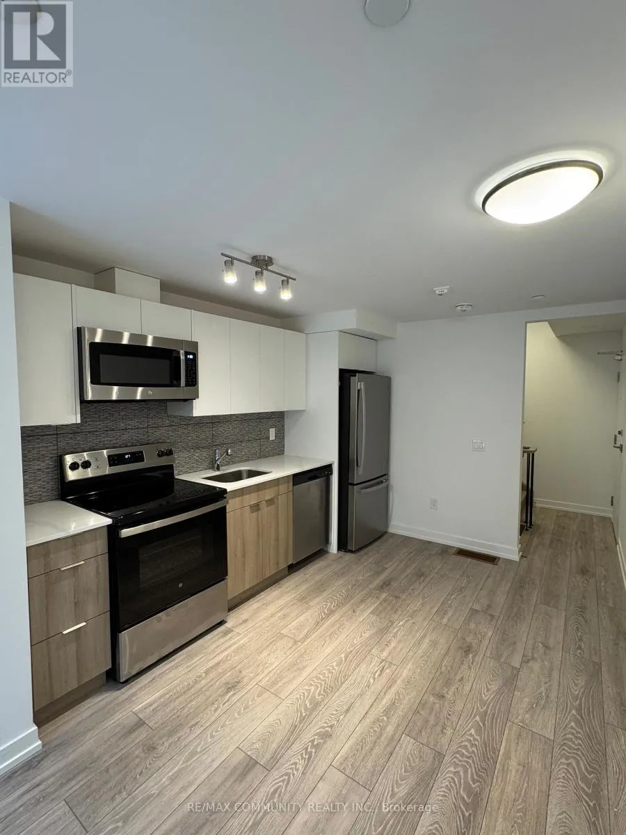 +"PublicRemarks": "Welcome to Huntingdale Towns, where modern design meets community living in Scarborough's L'Amoreaux district. This brand new, never lived in freehold townhome offers 1,267 sq ft of thoughtfully designed space w/ 3 bedrooms & 3 full baths, plus an unspoiled basement w/ rough-in for an additional bath.The open-concept main level features a sleek kitchen w/ stainless steel appliances, two-tone frameless contemporary cabinetry, soft-close drawers, quartz countertops & a tiled backsplash. The bright living/dining area is ideal for everyday living & entertaining. Natural oak staircases, high-end laminate flooring & slab-style interior doors w/ satin chrome hardware add warmth & sophistication throughout.The 2nd level offers a spacious bedroom w/ its own full bath. The primary suite occupies the 3rd level, complete w/ an ensuite & private balcony walk-out. The 4th level features another generous bedroom w/ a full bath & access to a convenient terrace. Bathrooms throughout are finished w/ European-inspired cabinetry, quartz countertops, undermount sinks, LED vanity mirrors, ceramic tile flooring & polished chrome fixtures, while the soaker tub w/ tiled surround adds a spa-like touch. A separate laundry closet on the 2nd level w/ stacked washer/dryer adds everyday convenience.Additional highlights include energy-efficient windows, multi-zone digital thermostats, ample storage & secure underground parking.Huntingdale Towns places you close to parks, schools, shopping & dining. Enjoy Shawnee Park, Duncan Creek, the L'Amoreaux Sports Complex, Fairview Mall, Agincourt Mall & Bridlewood Mall. Local restaurants include Aoyama Sushi, Mr. Congee & The Keg, while Seneca College & L'Amoreaux Collegiate are nearby. Commuting is effortless w/ Highways 401, 404 & TTC transit close by.***Some Photos Virtually Staged*** (id:62650)"