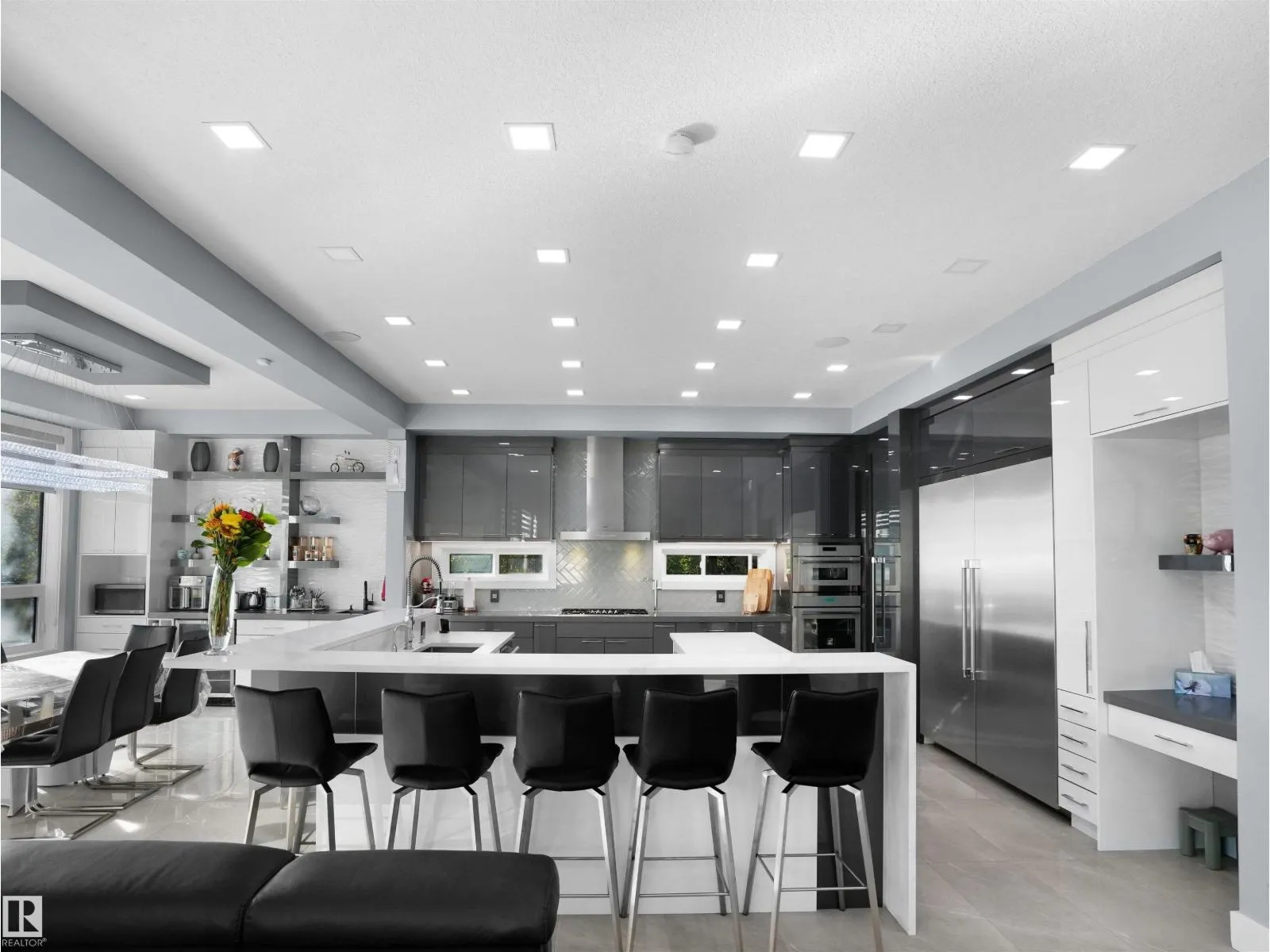 +"PublicRemarks": "Exclusive rare gem in the heart of Edmonton’s most desired community – Windermere! This stunning custom-built masterpiece offers nearly 6000 sq.ft. of luxury living space including a fully finished basement. Situated on a wide lot with triple attached garage and impressive frontage, this home features an open concept layout with den w/glass doors, open-to-above ceilings, and a chef’s dream kitchen with U-shaped island, built-in appliances, and cabinet-matched doors. Formal dining area opens to a serene backyard with mature trees, large deck, and mini water pond. Main floor bedroom with 3pc ensuite. Upstairs showcases a lavish primary suite with wet bar, sitting area, & spa-style ensuite w/steam shower, plus 2 additional bedrooms w/ensuites and a bonus/flex room with built-in office cabinetry. Fully finished basement with in-floor heated tiles, rec room, gym, theatre, side entry, and additional bed & bath. Control4 Smart Home Automation throughout. A true showstopper—see it to believe! (id:62650)"