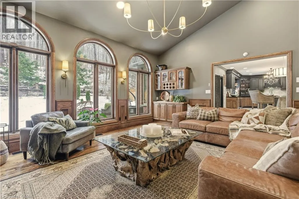 +"PublicRemarks": "Welcome to an exceptional residence in the coveted Stoney Creek Plateau, where luxury, privacy, and breathtaking natural surroundings come together seamlessly. Offering more than 6,500 square feet of finished living space, this impressive home backs directly onto the Niagara Escarpment, showcasing sweeping views of Lake Ontario and the Toronto skyline. The grand main level welcomes you with an elegant foyer that opens into a stunning family room with soaring vaulted ceilings. The gourmet kitchen and formal dining room create an ideal setting for both everyday living and memorable entertaining. With 4+1 bedrooms, 5 bathrooms, and a serene, private backyard, this home delivers an extraordinary blend of comfort, sophistication, and modern convenience. The fully finished lower level includes a complete suite—perfect for multi-generational living, extended family, or guests seeking their own space. Homes of this calibre are rarely offered. Experience the lifestyle that awaits at 82 Maple Drive. Let’s get you home. (id:62650)"