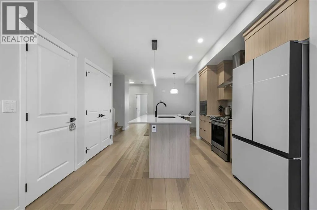 +"PublicRemarks": "** Great Value - $80K in upgrades - list available ** Side Entry ** Double Garage ** 1777+ Sq Ft ** 4 Bedroom home ** Immaculately maintained, almost brand new, bright and open plan. Modern design 2-story home in the heart of the vibrant Livingston community. Located on a fully paved lane with well-maintained double garages, offering a clean and organized rear access rarely found. GOURMET KITCHEN - CHEF'S DELIGHT! Custom features include upgraded classic wood-style cabinet doors, an efficient family-approved layout with stainless steel appliances (including a smooth-top stove), a glass panel front fridge, a central island with a flush eating bar, an undermount black granite sink, quartz countertops, custom full-height backsplash tile, and a stainless steel hood fan. The spacious dining room and great room bookend the open design, all of which feature 9-foot ceilings. The larger floor plan features a front main floor bedroom/office/den, an oversized front foyer, a back mudroom, a staircase with railings, and a landing. Super bright design!! All flooring is upgraded with wide-plank LVP hardwood flooring on the main floor and tile floors in the upper bathrooms- no carpet! BONUS: The upstairs bonus room is perfect for a home office, spare bedroom, or extra TV room. Three generously sized bedrooms & 2.5 bathrooms. NOTE: The primary bedroom features a private 3-piece en-suite with an upgraded sink basin, quartz countertops, and a spacious walk-in tiled shower with glass doors. Other upgrades include custom window coverings, an unspoiled basement with high 9' ceilings, side entry, oversized windows, a rough-in bathroom, and a 22' x 22' double-car garage with room for extra street parking out front. Excellent curb appeal with a covered front porch, fully landscaped with a walkway and fencing, all complete. Available for a 30/60 day possession date. Please feel free to call your friendly REALTOR(R) to view. (id:62650)"