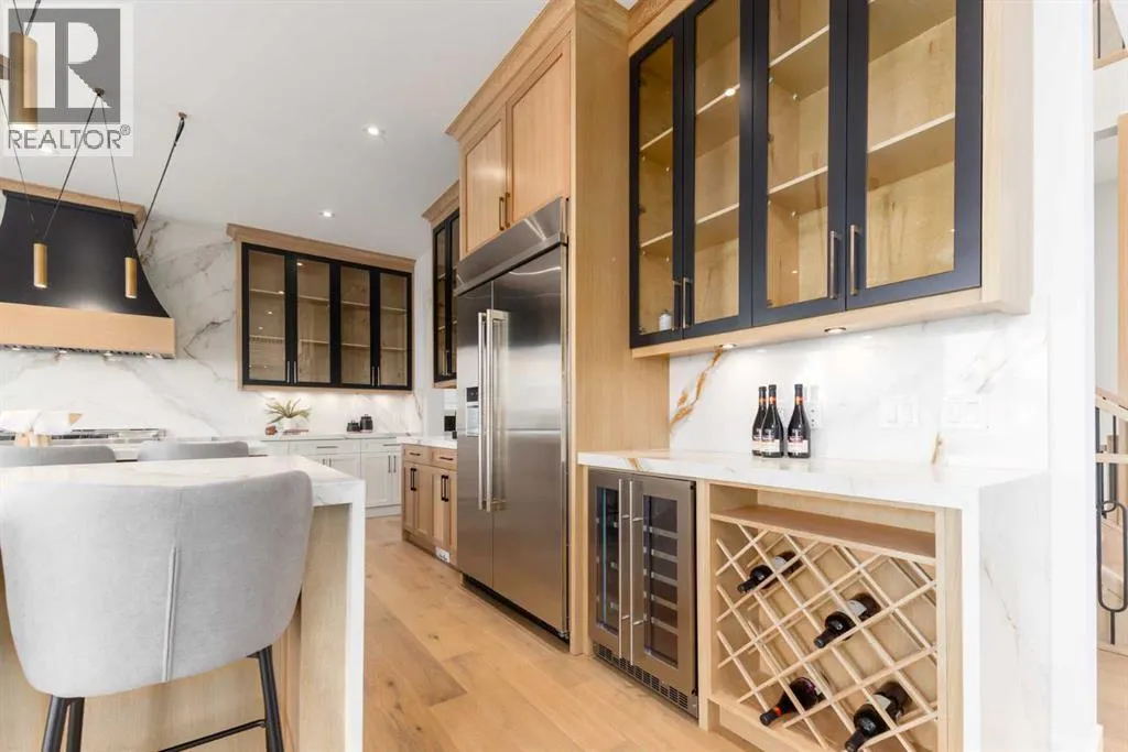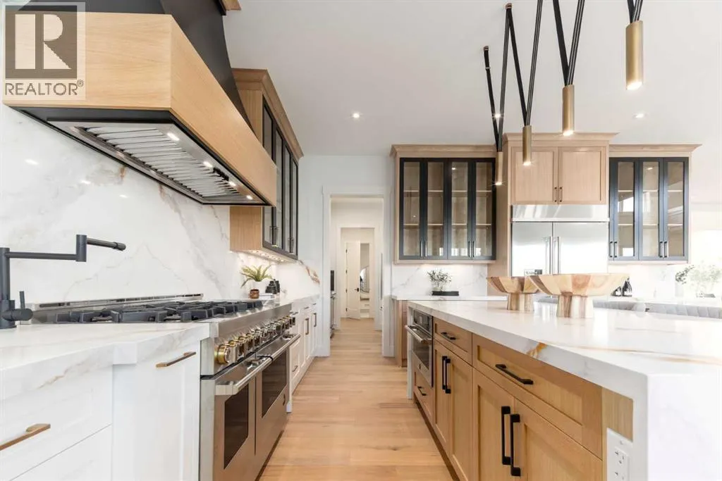+"PublicRemarks": "OPEN HOUSE THIS SATURDAY JANUARY 17TH FROM 3:00PM TO 5:00PM! Discover the epitome of luxury living at 200 Pondside Place, an extraordinary 7-bedroom, 6.5-bath estate in the prestigious community of Watermark at Bearspaw. Designed with families in mind, this home combines architectural elegance with modern functionality across nearly 6,800 sq ft of developed space. A striking façade of smooth stucco, black wood accents, and stone detailing sets the tone, while a four-car garage and exposed aggregate driveway provide both practicality and curb appeal. Inside, soaring ceilings, wide-plank oak floors, and expansive windows create a light-filled atmosphere that is as welcoming as it is refined. The gourmet chef’s kitchen is a true showpiece, featuring dual waterfall quartz islands, professional-grade Jenn-Air appliances, integrated wine storage, and a fully equipped spice/prep kitchen. The adjoining great room showcases a soaring fireplace wall and custom built-ins, perfect for both family gatherings and elegant entertaining. Formal dining is elevated with a glass-encased wine display and coffered ceiling, while a private main-floor office, guest suite, and stylish powder room add everyday convenience.Upstairs, the primary suite is a serene retreat with a boutique-style walk-in closet, spa-inspired ensuite with soaking tub and rainfall shower, and space for private lounging. Three additional bedrooms each feature their own ensuite and walk-in closet, while a flex loft/media space and a fully outfitted laundry room complete the level. The lower level is designed for recreation and relaxation, offering a spacious rec room with wet bar, fitness studio, plush theater room, and two additional bedrooms. Radiant in-floor heating throughout the lower level ensures year-round comfort. Set on a beautifully landscaped 0.28-acre lot, this home includes speaker zones, central vac, gas BBQ hookup, gas garage heater and smart-home rough-ins for modern living. Beyond the property, Wat ermark is one of Calgary’s most sought-after family communities, renowned for its strong sense of community, scenic pathways, and access to top schools and amenities. With nearby shopping, dining, recreation centers, and a quick drive into the city, it is the perfect balance of tranquility and convenience. (id:64429)"