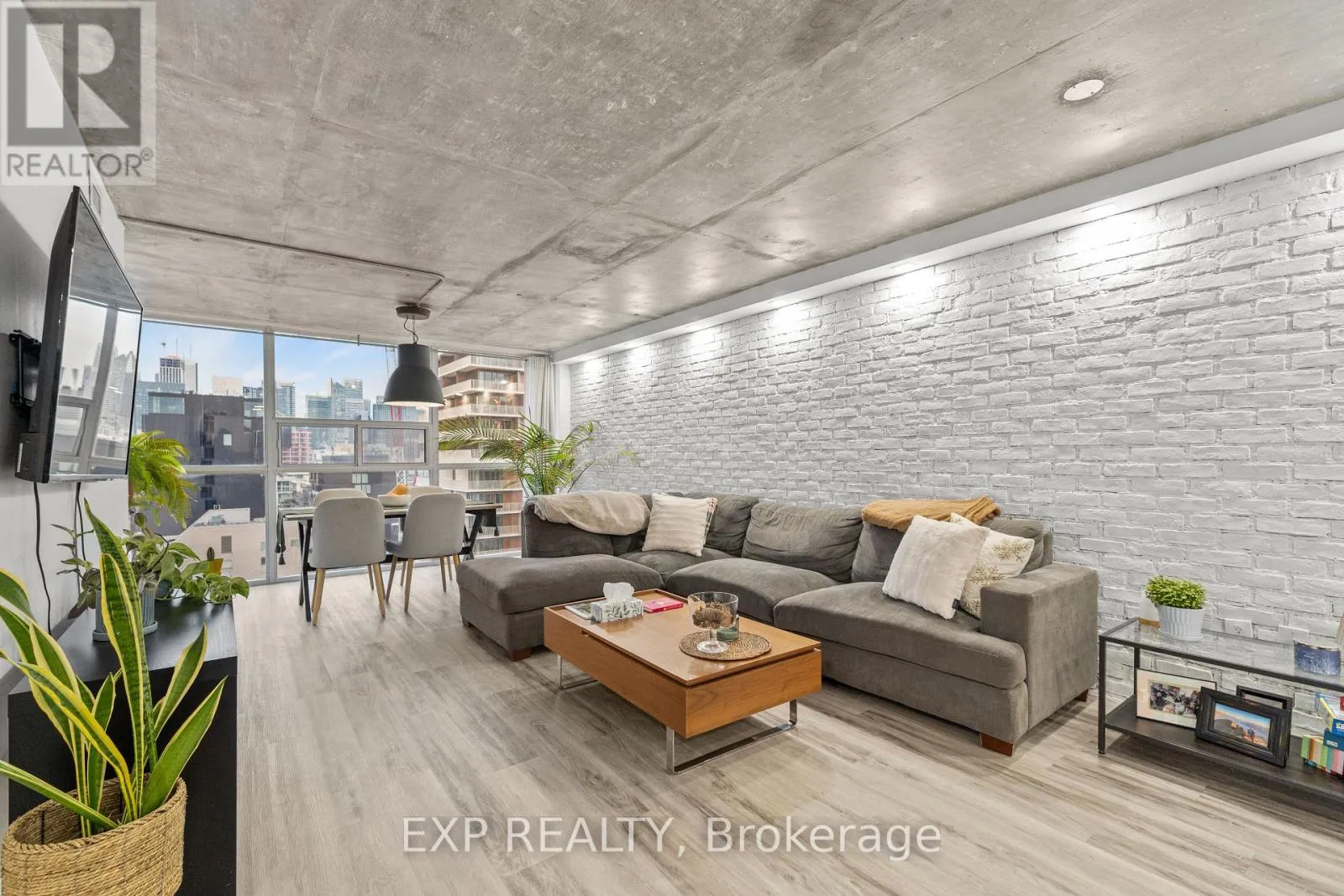 +"PublicRemarks": "Spacious 1-bedroom plus den residence featuring fresh renovations, exposed brick wall, and exposed concrete ceilings for a modern, loft-inspired feel. Recently renovated bathroom and an energy-efficient heat pump (under 3 years old) add comfort and peace of mind. Floor-to-ceiling windows provide excellent natural light, complemented by generous in-unit storage. Located in the heart of vibrant King West, within the highly regarded Summit building community, offering an unmatched lifestyle and amenities including indoor and outdoor pools, fully equipped gym, private movie theatre and cinema room, in house library, boardroom, seminar room, study area, the Spa and four squash courts. A truly rare and unique feature is the expansive green outdoor space-complete with a four BBQ areas, and landscaped grounds-an oasis rarely found in downtown Toronto. Just steps to hundreds of restaurants, bars, theatres, streetcar access, and the future Ontario Line station. An exceptional opportunity to enjoy urban living with resort-style amenities in one of Toronto's most sought-after neighbourhoods. There are 2 washers and Dryers on each floor, which is coin operated, could save tons on Hydro bill. Maintenance fee includes internet and if the buyers don't need a parking they could opt out and save on the maintenance fee. (id:62650)"
