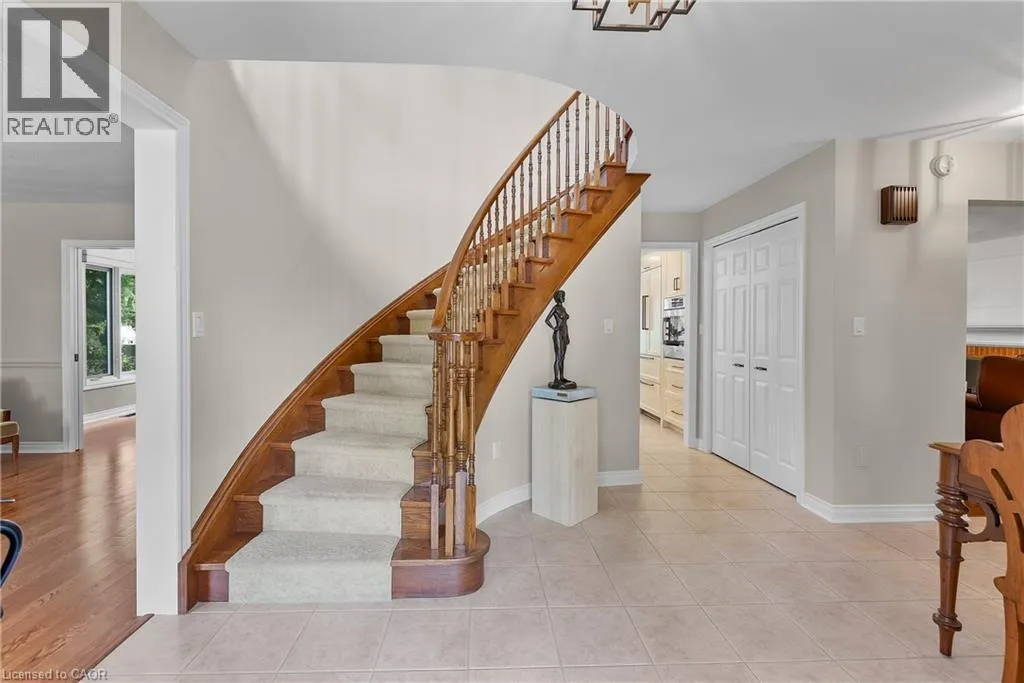 by mature trees that provide a sense of space and privacy rarely found within the city. With over 2,500 sq. ft. above grade, plus a finished lower level, the home offers generous proportions well suited to both everyday living and entertaining.The main floor features bright formal living and dining rooms with hardwood flooring, a comfortable family room with a gas fireplace, and an eat-in kitchen with direct access to the backyard for easy indoor-outdoor flow. Upstairs, the serene primary suite overlooks the gardens, while three additional bedrooms offer flexible space for family, guests, or a home office. The finished lower level expands the living space further with a large recreation area ideal for movie nights, games, or future in-law potential. Outside, the backyard offers a private, tree-lined setting with a wide patio and retractable awning, along with ample room to relax, play, or explore future options such as a pool or home addition. A double garage and extended driveway provide parking for up to eight vehicles. Conveniently located near schools, parks, and shopping, this home presents a rare opportunity to own a spacious, well-built property in one of Niagara Falls’ most respected neighbourhoods. (id:62650)