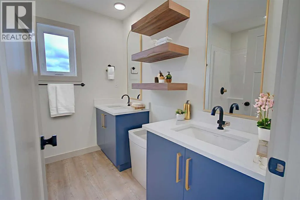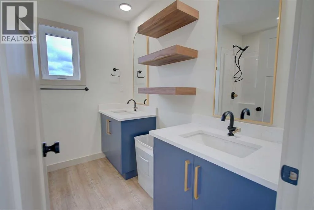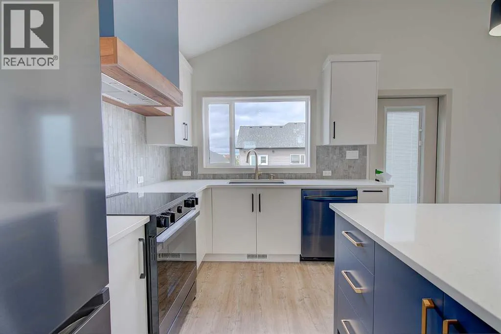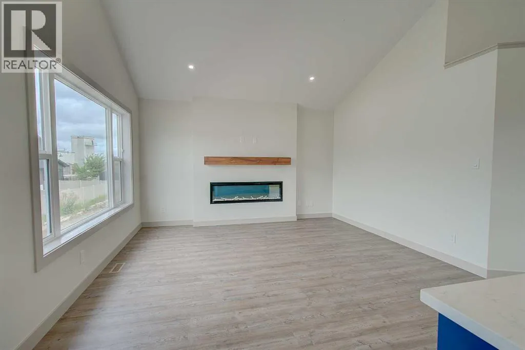 +"PublicRemarks": "IMMEDIATE POSSESSION AVAILABLE! TRIPLE GARAGE. Brand new FULLY Developed (2141 SQ. FT. OF LIVING SPACE) 3 bedroom 3 bathroom modified bi-level with TRIPLE attached garage. This fabulous home is located in Timberlands North, close to shopping, schools, Canyon Ski Hill, Riverbend golf course with easy access to the highway and north/south Red Deer. The main floor has a beautiful open kitchen/dining room living room design. The kitchen is finished with quartz counter tops, a large Island and black stainless steel appliances. The living room has plenty of natural light and a large linear electric fireplace-flooring is luxury vinyl plank. There is also a 4 piece bathroom on the main floor and a good sized spare bedroom. The master bedroom is located up a few stairs with large walk in closet with custom shelving and a 4 piece ensuite with his/hers sinks and stand up shower. The lower level also has an abundance of natural light and has a spacious family room, finished laundry room with black stainless steel washer dryer, 4 piece bathroom and another bedroom-flooring is carpet. The lower level has roughed in under slab heat, roughed in central vac. Outside you will find a finished rear deck with aluminum railing, a gas line for barbecue, a fully sodded front yard and rear fence. This home comes with a 10 year new home warranty. (id:62650)"
