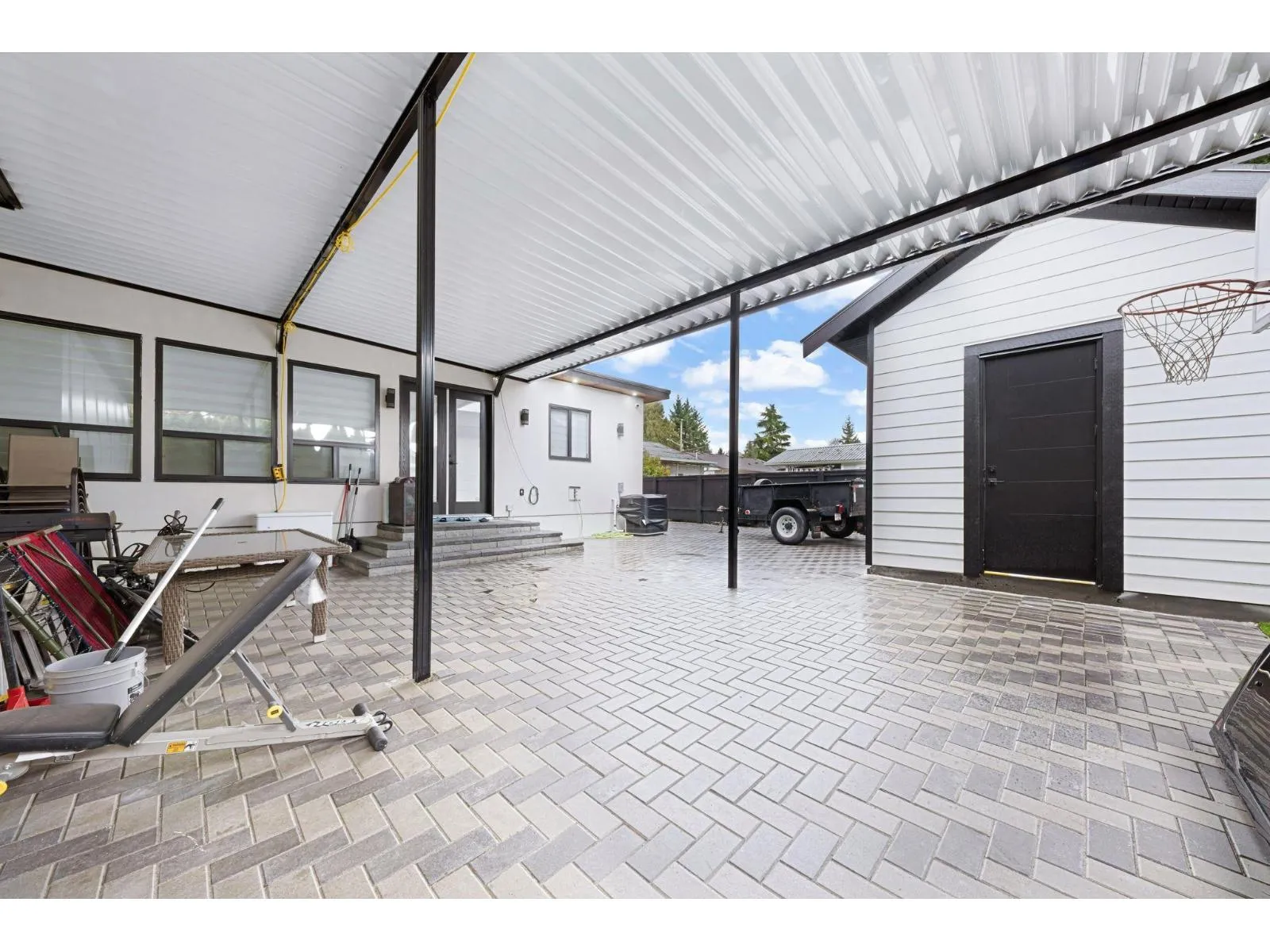 +"PublicRemarks": "Centrally located house on over 8000 sqft lot. Close to schools, shops and Guildford Mall and Surrey Central, Putalo Bridge and Portman Bridge. Walking distance to bus stops. House had its final done in May of 2023, with air condition and 2, 5, 10 year warranty. House has big patio or balcony on top and bottom at the back with lots of parking house has 5 bedroom on top with 4 full washroom, with 9 ft ceiling's. The bottom floor has living room, family room, kitchen and spice kitchen with 2 car garage in the middle. Plus two bedroom ground level suite. Private lot, lots of paved parking with full metal fence making it very private. GST is included future potential for condo or townhouse. (id:62650)"