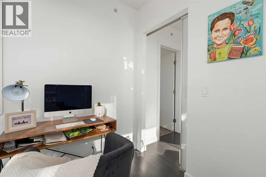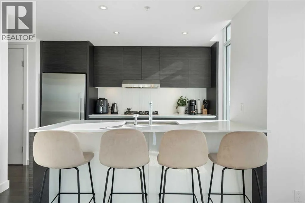 +"PublicRemarks": "Experience Elevated Urban Living in The Smith! Welcome home to a space that instantly feels right. Bright, modern, and move in ready, this one bedroom plus den condo in Calgary’s sought after Smith Building offers more than just a place to live, it offers a lifestyle. From the moment you step inside, floor to ceiling windows pull your gaze across sweeping downtown skylines and toward the distant mountains. The sunlight pours in, energizing your mornings and softening your evenings, creating a daily backdrop that never gets old. Whether you're sipping your first coffee or unwinding after work, the view becomes a part of your everyday rhythm.The open concept layout flows effortlessly into a sleek, contemporary kitchen, where quartz countertops, stainless steel appliances, and a gas cooktop invite both casual cooking and dinner in with friends. It’s the kind of kitchen that makes hosting feel easy and everyday meals feel elevated.A versatile den gives you room to shape your lifestyle: a quiet home office, a creative corner, or a welcoming space for overnight guests. The primary bedroom, complete with a walk-in closet, offers comfort, calm, and thoughtful storage. A stylish 4 piece bathroom with in floor heating adds a touch of luxury, while insuite laundry brings true convenience to your daily life.With secure, titled underground parking and your own titled storage locker, you’ll enjoy peace of mind and the ease of coming and going in the heart of the city.And then there’s the neighborhood, just steps from 17th Avenue, where vibrant cafés, boutique shops, parks, and some of Calgary’s best dining options turn every day into an opportunity to explore. From morning runs to late-night desserts, your lifestyle expands far beyond your front door.This is more than a condo. It’s a home that blends style with comfort, energy with tranquility, and city convenience with breathtaking beauty.Don’t miss your chance to own a space that inspires and a view that never stops givi ng. (id:64429)"