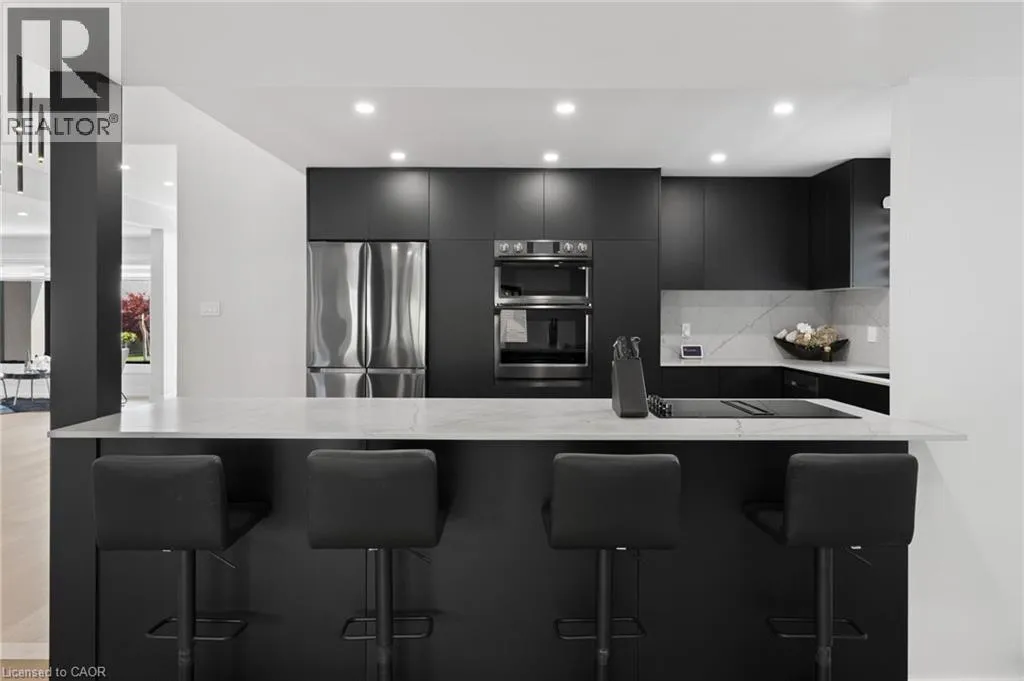 +"PublicRemarks": "Nestled on a quiet, family-friendly street beneath the Escarpment, this exceptional custom renovated home impresses at every turn. Offering over 4,200 sq. ft. of luxurious living space, it showcases high-end finishes and impeccable design throughout. The thoughtfully designed layout includes 4+2 bedrooms, 4 bathrooms, and a private in-law suite with a separate entrance.From the moment you enter, the stunning foyer and illuminated staircase set the tone, serving as a striking architectural centerpiece. The chef's kitchen is truly a showstopper, featuring custom black cabinetry, leather-finished quartz countertops, an oversized island, and top-of-the-line appliances. The main level also offers an open-concept formal living and dining area, along with a spacious family room anchored by a custom fireplace.Upstairs, you'll find three generously sized bedrooms and two beautifully designed bathrooms, each complete with a freestanding tub and separate shower. The main floor also includes a fourth bedroom or home office, plus an oversized spa-inspired bathroom with conveniently located laundry.The finished basement spans approximately 1,600 sq. ft. and includes a private suite with its own kitchen, bedroom, and bathroom-ideal for in-laws, teenagers, or rental income. An additional area offers endless possibilities, including a home gym, office, or secondary living space.Step outside to a professionally landscaped backyard designed for year-round enjoyment. The 14-ft swim spa features four jacuzzi seats, a swim current, and temperature control-perfect for summer swimming and winter relaxation, with far less maintenance than a traditional pool. Enjoy a turn key home with all the major updates: Engineered hardwood flooring on the main and second levels, European front doors, gemstone stucco façade, new windows (2023), roof (2022), garage doors (2023), security cameras, and Google doorbell. A truly exceptional home-this is a must-see! (id:62650)"