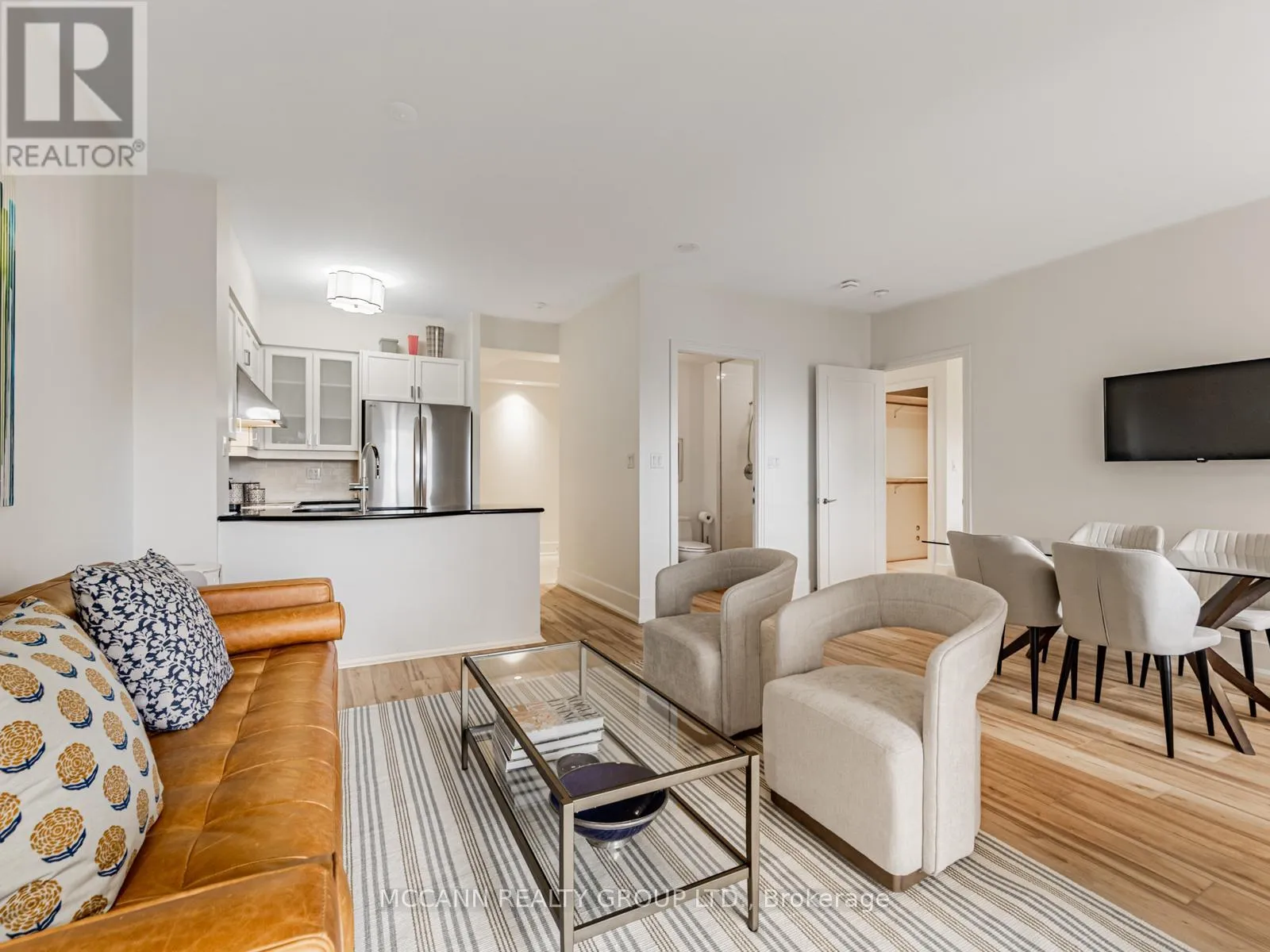 +"PublicRemarks": "Welcome to this gorgeous 840 sq ft 1 bedroom unit in the heart of Yorkville. Enter through a grand foyer equipped with a spacious closet and in-suite washer/dryer, leading seamlessly into a beautifully updated kitchen featuring brand-new stainless steel appliances including LG Fridge (2025), LG Induction Stove (2025), and a Bosch Dishwasher (2024) with all new faucets. Freshly painted and finished with new engineered hardwood flooring in 2025, the home offers a refined, modern feel throughout. The open-concept kitchen overlooks an expansive living and dining area, an ideal space for hosting and entertaining. The generous primary suite boasts a walk-in closet and a luxurious 5-piece ensuite, complete with double sinks, a deep soaking tub, and a glass-enclosed shower. The large terrace is 125 sq ft with east exposure. 1 Locker & 1 Parking Spot! Maintenance fees include high speed Bell fibe internet with a TV package, water, heat, electricity, and A/C. Amenities include a concierge, valet car service, gym, sauna, party room and guest suites. Located steps from fine dining, luxury boutiques, the University of Toronto, the ROM, and multiple TTC stations (Bay on Line 2, Museum/Bloor on Line 1), this residence offers the ultimate Yorkville lifestyle. (id:62650)"