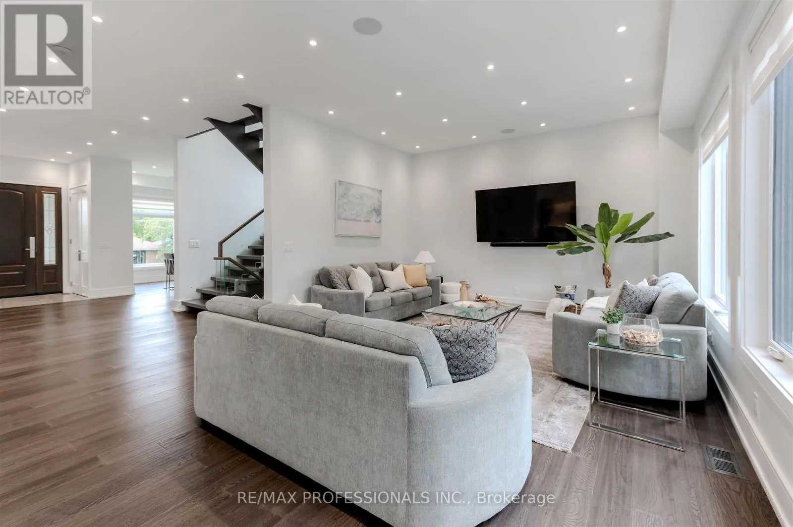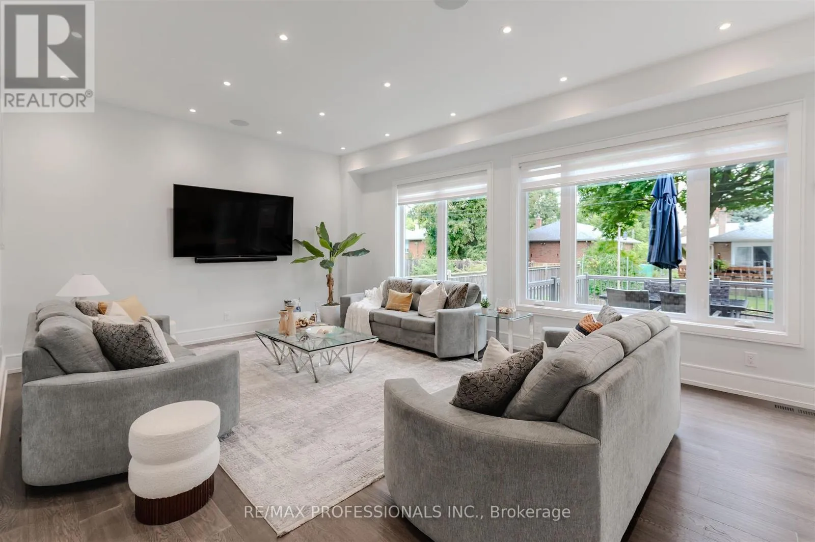 +"PublicRemarks": "The Toronto Dream! Step into a realm of elegance with this exquisite masterpiece, sprawling across approximately 6,300 sq ft of luxurious total living space. Designed with modern sophistication in mind, this residence boasts soaring ceilings throughout, creating an airy, open atmosphere that invites exploration at every turn. Every inch of the property has been professionally landscaped, with a brand-new heated driveway leading to the pristine home. Outside, you'll be captivated by the magnificent new saltwater pool and cabana, complete with lush new turf that transforms the backyard into your own private oasis. A striking black architectural overhang extends your outdoor living space with style and function. Inside, the gourmet chef-inspired kitchen is outfitted with top-of-the-line built-in appliances and a convenient servery, perfect for both everyday cooking and entertaining guests. Retreat to one of the four spacious upstairs bedrooms, each featuring its own walk-in closet and private ensuite bath, offering ultimate privacy and comfort. The dedicated nanny suite on the lower level provides flexibility and convenience for larger families. Indulge in the serenity of the sauna room, your personal sanctuary for unwinding after a long day. With every detail thoughtfully curated, this home offers a rare blend of luxury, comfort, and modern elegance. (id:62650)"