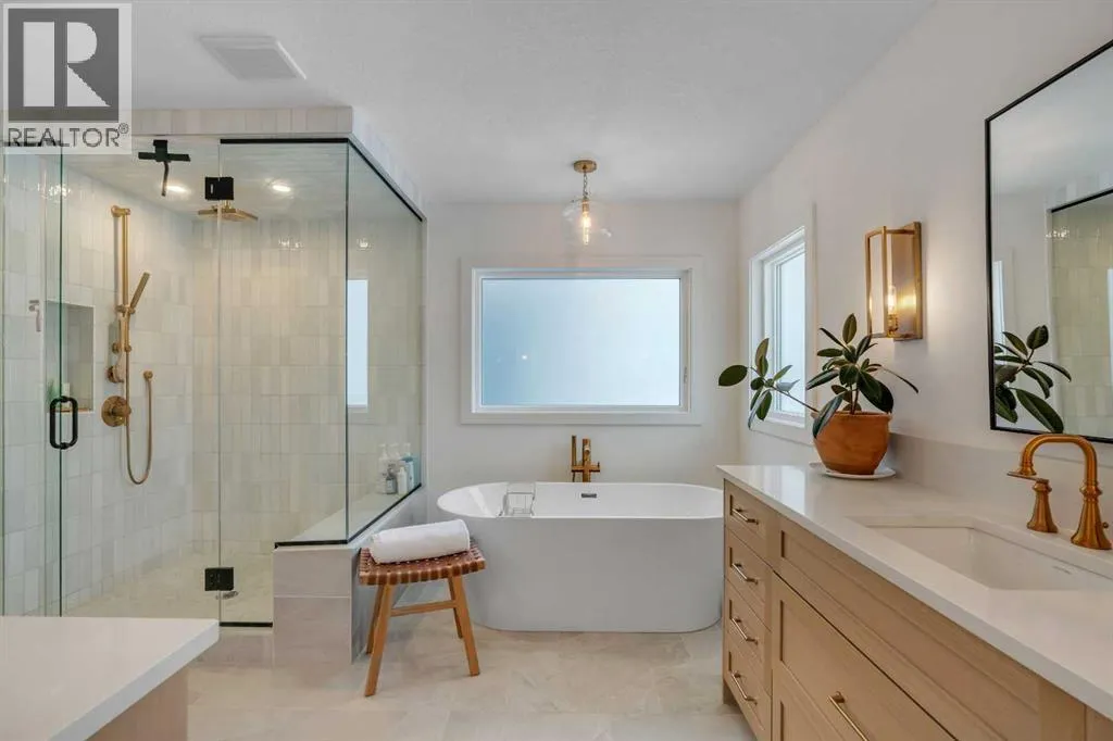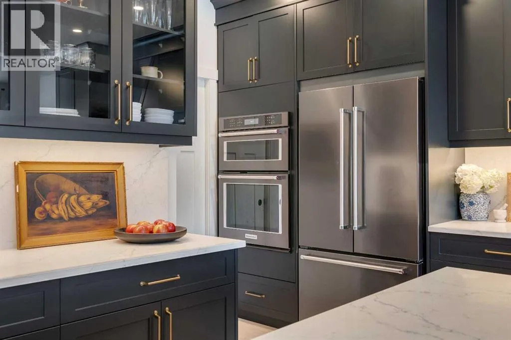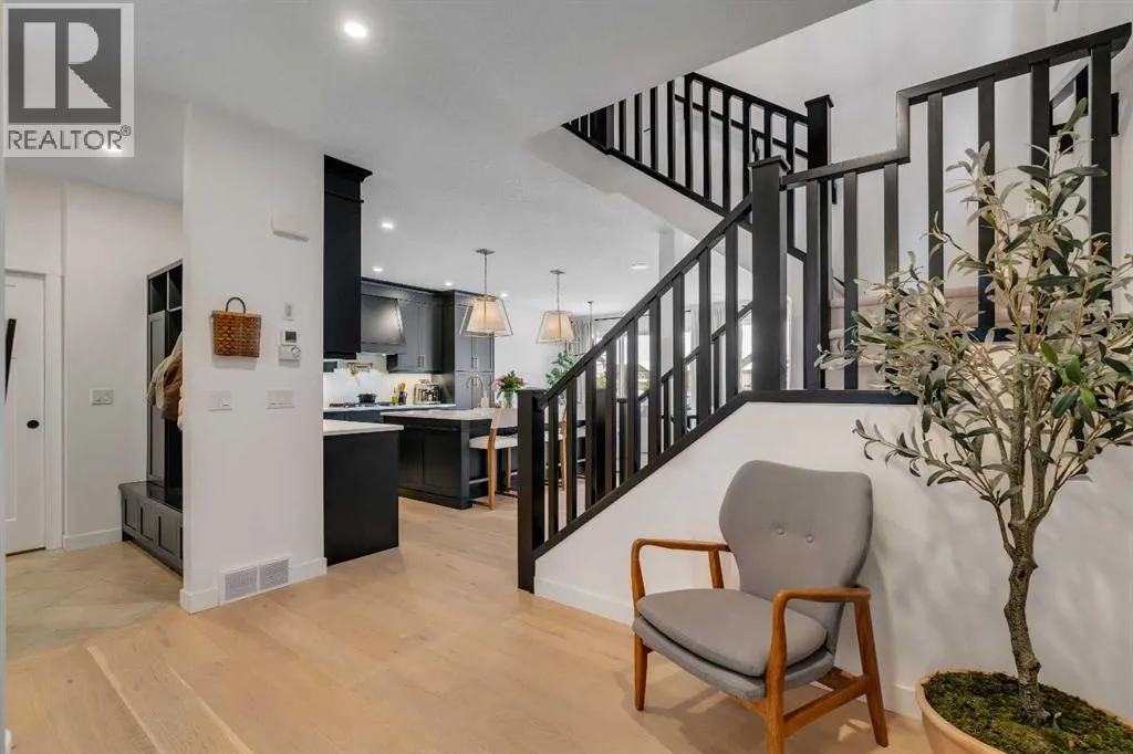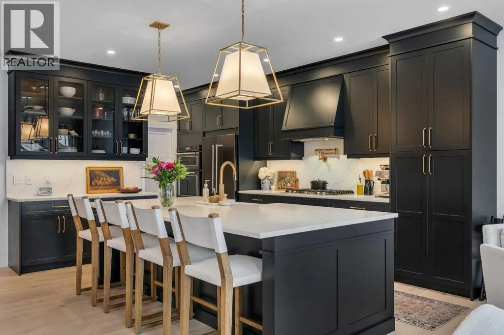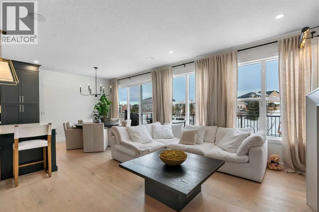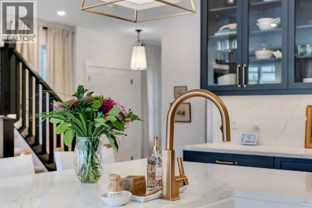 +"PublicRemarks": "Welcome to this stunning, fully upgraded 4 bedroom, 3.5 bath home in the highly sought after community of Cranston’s Riverstone. Perfectly positioned backing onto green space and just steps from the river, walking paths and the pond, this 2,402 sq.ft home blends luxury finishes with thoughtful design. The main floor offers an elongated entryway leading to an open concept living area flooded with natural light, a beautiful gas fireplace surrounded by custom built ins, a gourmet kitchen with quartz counters and backsplash, upgraded KitchenAid black stainless steel appliances, gas range with pot filler, custom hood fan, farmhouse sink, dining room, large walk in pantry and designer lighting. A custom mudroom with built in lockers adds everyday convenience. Upstairs features three bedrooms and two full baths, including a secondary bath with double vanities - perfect for sharing. The primary bedroom impresses with vaulted ceilings, a spa like ensuite, complete with a freestanding tub, rain shower with marble and zellige style tile, separate vanities and a large walk in closet connected to a convenient laundry room. A spacious vaulted bonus room completes the upper level. Downstairs, the fully finished basement includes a fourth bedroom, office space, full bath, wet bar with quartz counters/sconces and a cozy living area with an electric fireplace - ideal for entertaining. With over 100k in premium upgrades, including heated floors, custom cabinetry, built in speakers, smart lighting and rough ins for A/C and central vac, this home offers modern comfort and timeless style in a beautiful natural setting. (id:62650)"