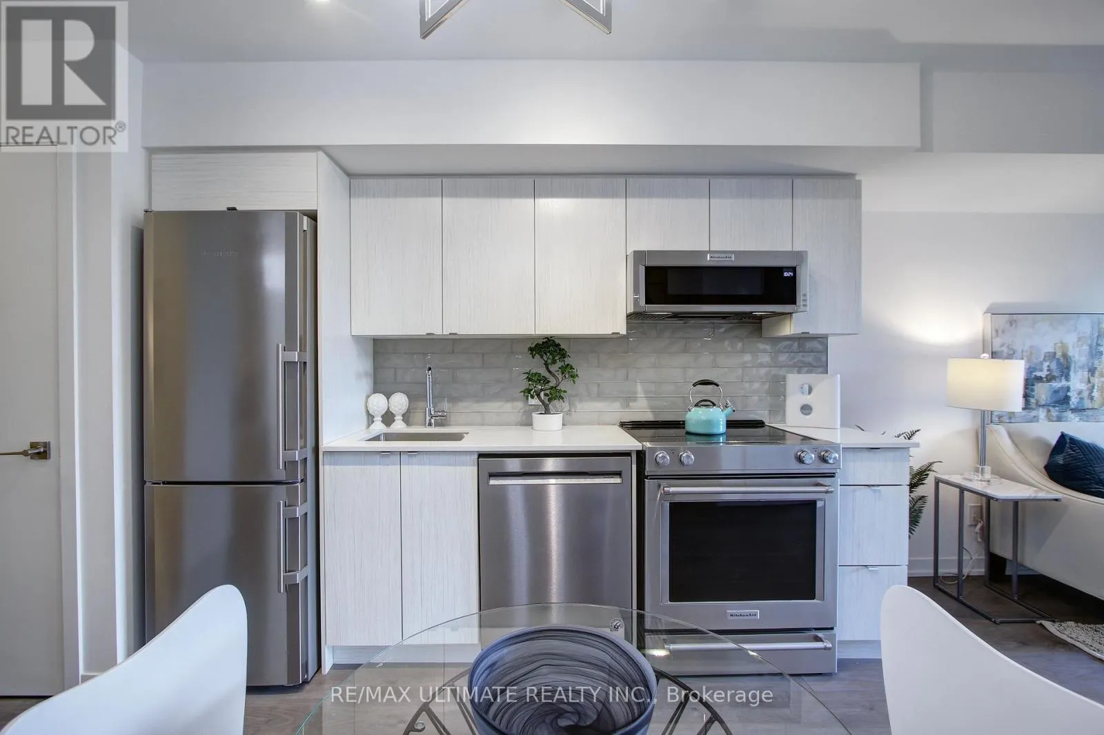 +"PublicRemarks": ""The Lanes" boutique condo in prime East York for lease! Upgraded 1 bedroom plus large den (separate room). 2 full baths. 682 Sq Ft. Parking and locker included. Open concept layout with walkout to balcony. Overlooks Topham Park neighbourhood. Den has a double closet and can be used as a 2nd bedroom. Kitchen has upgraded stainless steel appliances, mobile kitchen island. Bedroom features 3-pc ensuite bath and double closet. Laundry. Close to highways, restaurants, shops, TTC stop at door. Fabulous amenities include: concierge, Skyview Fitness Center, party/meeting room, Sky Deck rooftop lounge with BBQ area and more! (id:62650)"