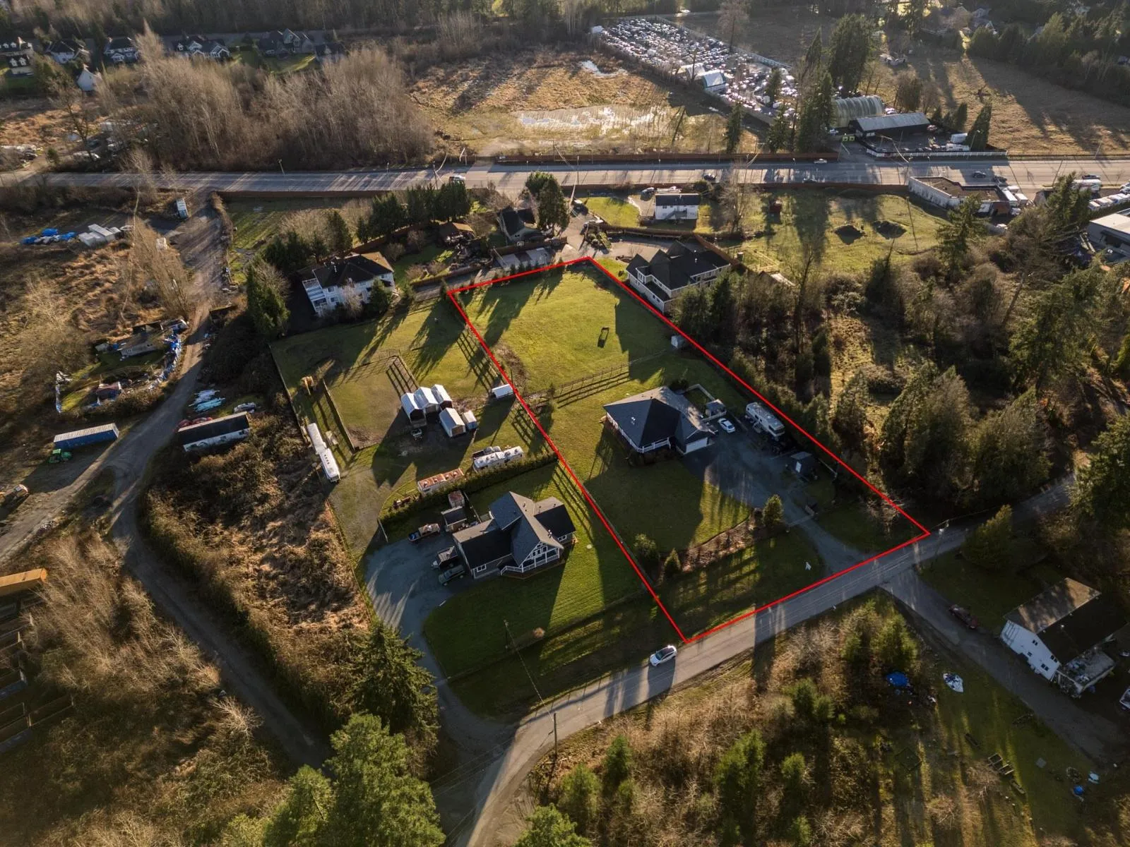 FANTASTIC INVESTMENT ATTENTION INVESTORS/DEVELOPERS FUTURE INDUSTRIAL PROPERTY (check with Strategically located in the “Fraser Highway Employment Lands Area Plan” making it a wise & lucrative investment. Gorgeous home & excellent income! Not in the ALR & sewer next door. Private Parklike level usable 1.3 acres minutes to Murrayville town center. Bright & Spacious open plan rancher with basement & legal