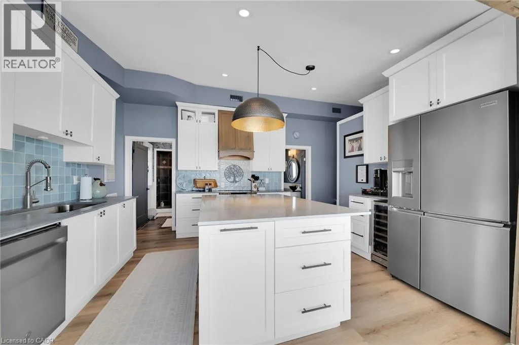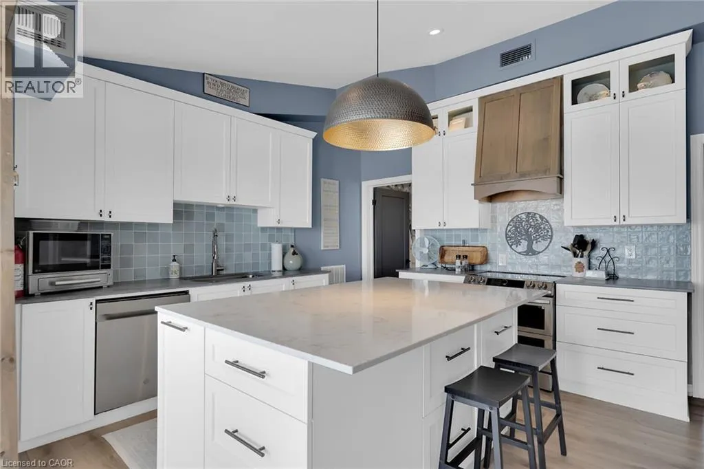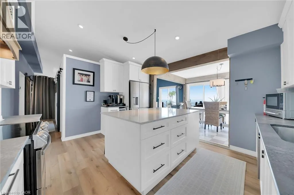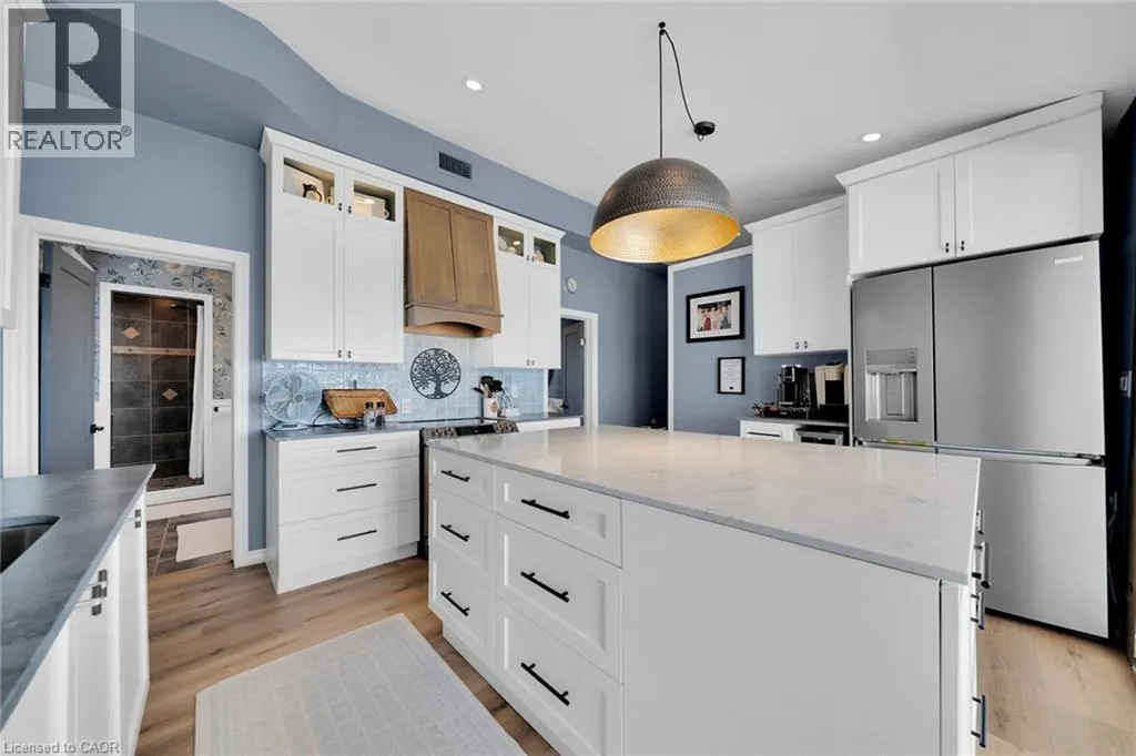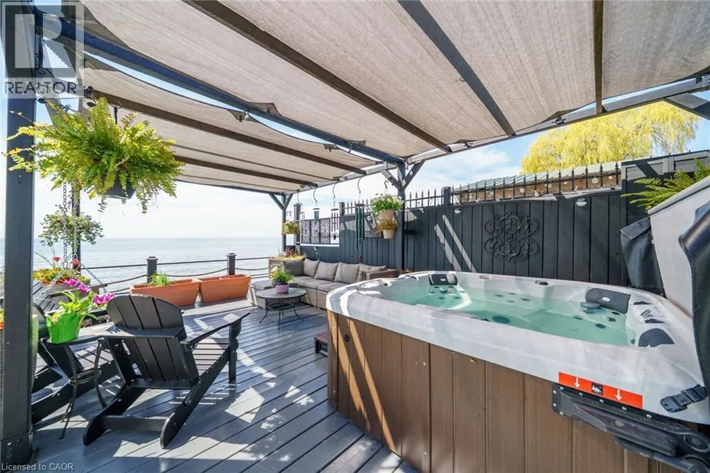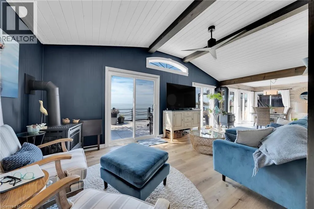 effect concrete patio, pergola with decked entertaining area & hottub (’24), solid breakwall, lakeside shed, & private stair access to sand bottom beach. The gorgeous interior layout emphasizes the stunning Waterview’s, five sets of sliders, custom kitchen cabinetry featuring quartz countertops, tile backsplash, bright dining area (fits 10+), vaulted great room with both corner gas fireplace & woodstove, 3 bedrooms, additional bedroom / den area, welcoming foyer, upgraded 3 pc bathroom, & desired MF laundry. Bonus attached garage/utility room ideal for workshop & storage with auto garage door. Upgrades include n/gas furnace– 2025, premium flooring, modern fixtures, windows, maibec exterior siding, fiber optic cable / internet & much more! Easy commute to Hamilton, 403, QEW, & GTA. Close to Cayuga. Ideal Year round home, cottage or Investment. Must view to appreciate the attention to detail & upgrades that this home has! You too can experience affordable Lake Erie Waterfront Living. (id:62650)