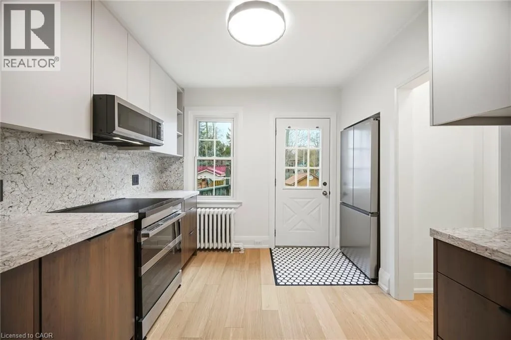+"PublicRemarks": "Modern family living in this stunning 2-storey detached home with 2,898 total sq. ft., 3 bedrooms, and 4 bathrooms. Just a 7-minute drive to both Long Branch GO and Mimico GO, a 15-minute walk to the lake and Colonel Samuel Smith Park, and only a 4-minute walk to Twentieth Street Junior School. Plus, you're just moments from Lake Shore Blvd. The main floor showcases an open-concept layout with a formal living and dining area at the front of the home, complete with wide-plank hardwood, pot lights, large windows that fill the space with natural light, and sleek glass railings. At the heart of the home is a chefs kitchen featuring designer pendant lighting, a full-height light grey backsplash, elegant two-tone cabinetry with white uppers and charcoal grey lowers, quartz counters, premium stainless steel appliances, a gas range, and a large centre island with seating for four. Soaring 10' ceilings extend through the kitchen and family room, where an electric fireplace adds warmth and style. The adjoining family room flows seamlessly to the outdoors with a walk-out to a private deck and fenced yard perfect for summer gatherings.Upstairs, the primary retreat offers a walk-in closet and a spa-inspired ensuite with heated floors, sleek vanities, modern tile work, premium fixtures, and a second electric fireplace for added comfort. Two additional bedrooms and a full bath complete the upper level.The finished lower level expands the living space with windows, two storage areas, and flexible room ideal for a home office, gym, media room, or play space, plus a 3-pc bath, direct walk-out to the yard, and a built-in garage with interior access and an EV charging outlet. Steps to Gus Ryder Pool and Health Club and quick access to QEW & 427 highways. (id:62650)"