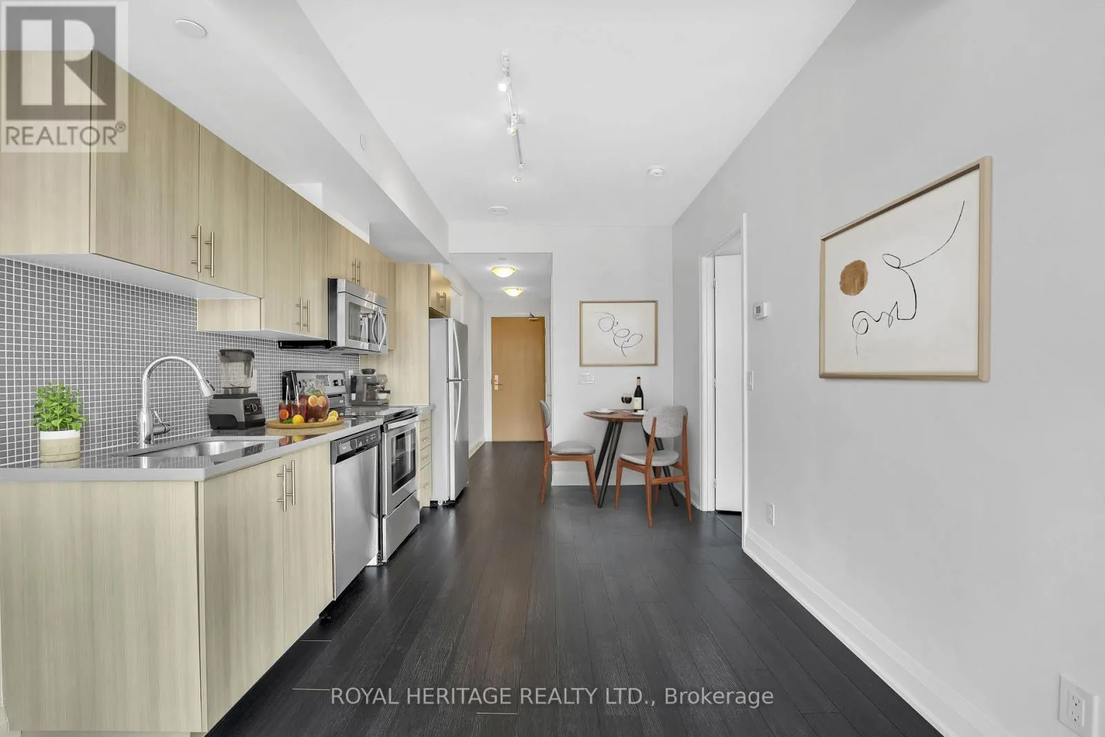+"PublicRemarks": "Welcome to this Bright & Spacious 1-bedroom + Den Condo in a brand-new building offering modern living. Enjoy the convenience of an ensuite laundry and modern finishes and amenities with 24-hour concierge service. Perfectly located near shopping, dining, and transit, with just minutes to Glencairn Station. This unit also includes a parking spot. (id:62650)"