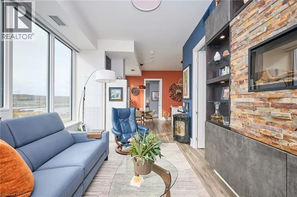 +"PublicRemarks": "Perched high above the shoreline, this exceptional corner waterfront penthouse offers the refined comfort of a luxury residence paired with sweeping, unobstructed views of Lake Ontario and the Niagara Escarpment.Soaring 10-foot ceilings and expansive floor-to-ceiling windows flood the home with natural light, creating an inviting and sophisticated atmosphere throughout. Designed with entertaining in mind, the open-concept layout is complemented by premium flooring, designer-inspired bathrooms, and motorized Hunter Douglas remote blinds. The family room is anchored by custom built-in cabinetry and a striking fireplace, blending style and warmth. The living area flows effortlessly to a generous balcony-an ideal backdrop for morning coffee or sunset entertaining.Additional conveniences include two premium underground parking spaces located close to the elevator, along with access to an impressive collection of resort-style amenities. Residents enjoy a 24-hour concierge, rooftop terrace with BBQs and lounge areas, party room, fully equipped fitness centre, EV charging stations, and a dedicated dog spa for four-legged companions.Ideally situated steps from boutique shops, charming cafés, and fine dining, and just moments from conservation areas, marinas, local wineries, and major highway access, this location delivers an exceptional balance of lifestyle and convenience.This fully appointed penthouse suite represents a rare opportunity to experience the very best of waterfront living. (id:62650)"