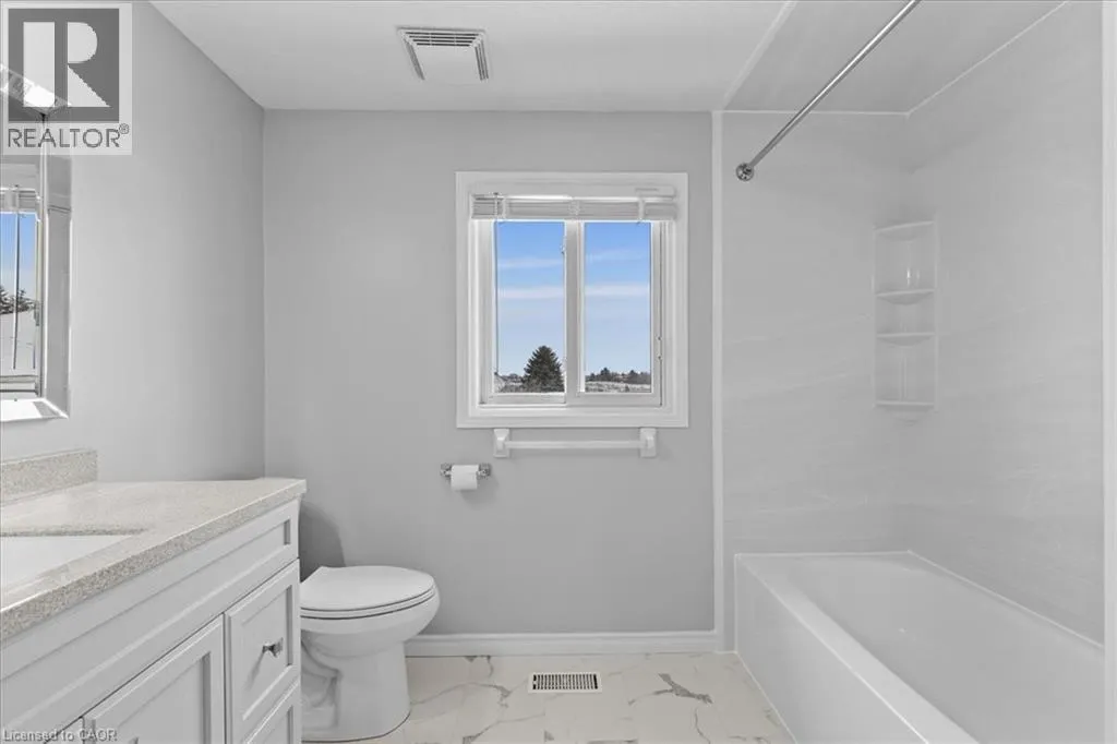 +"PublicRemarks": "***OPEN HOUSE SUNDAY, JANUARY 18TH 2-4 PM****Located in the sought-after Beechwood Forest neighborhood, this beautifully updated home offers a bright, open-concept layout with modern finishes throughout. The main level features contemporary white cabinetry, a stylish breakfast bar island, and a spacious dinette area with large patio sliders providing direct access to the backyard. Big windows throughout the home flood the space with natural light, enhancing the fresh, airy feel. The main and upper levels are carpet-free and showcase luxury flooring throughout. Recently refreshed with fresh paint, the home also includes a new 8-foot garage door for added curb appeal and functionality. The renovated main bathroom and updated powder room with stone countertop accents add a refined touch. The upper level offers three generously sized bedrooms, including a spacious primary bedroom with a walk-in closet and access to a large, newly renovated cheater en-suite bathroom. The fully finished lower level features a comfortable recreation room with carpeted flooring and a rough-in already in place for an additional bathroom, offering flexible space for a home office, gym, or family room. Outside, enjoy a partially fenced yard ideal for relaxing or entertaining. Ideally located close to Shops at the Boardwalk, expressway access, schools, public transit, and a variety of shopping plazas, this move-in-ready home delivers both comfort and convenience. Some photos virtually staged. (id:62650)"