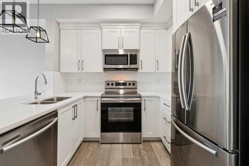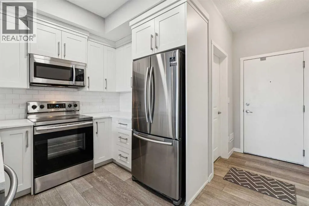 +"PublicRemarks": "Welcome to The Rise—this bright, top-floor 2-bedroom, 1-bathroom condo offers move-in ready living. Freshly painted with new carpet, the open-concept layout is filled with natural light and complemented by vinyl plank flooring. The sleek kitchen is a standout, featuring quartz countertops, stainless steel appliances, full-height cabinetry, and a classic subway tile backsplash—perfect for everyday living and entertaining. The sunny living area opens to a west-facing balcony with a gas line for summer BBQs overlooking the courtyard. The spacious primary bedroom features a bright west-facing window and a closet, while the second bedroom is ideal for guests, a home office, or a nursery. A 4-piece bathroom and a convenient laundry/storage room complete this fantastic unit. Additional features include a TITLED outdoor parking stall, visitor parking, and plenty of street parking. Enjoy a pet-friendly community with ample outdoor activities including parks and walking paths, plus unbeatable access to Deerfoot and Stoney Trail, the airport, shopping, restaurants, schools, and entertainment. All you need is the key! (id:62650)"