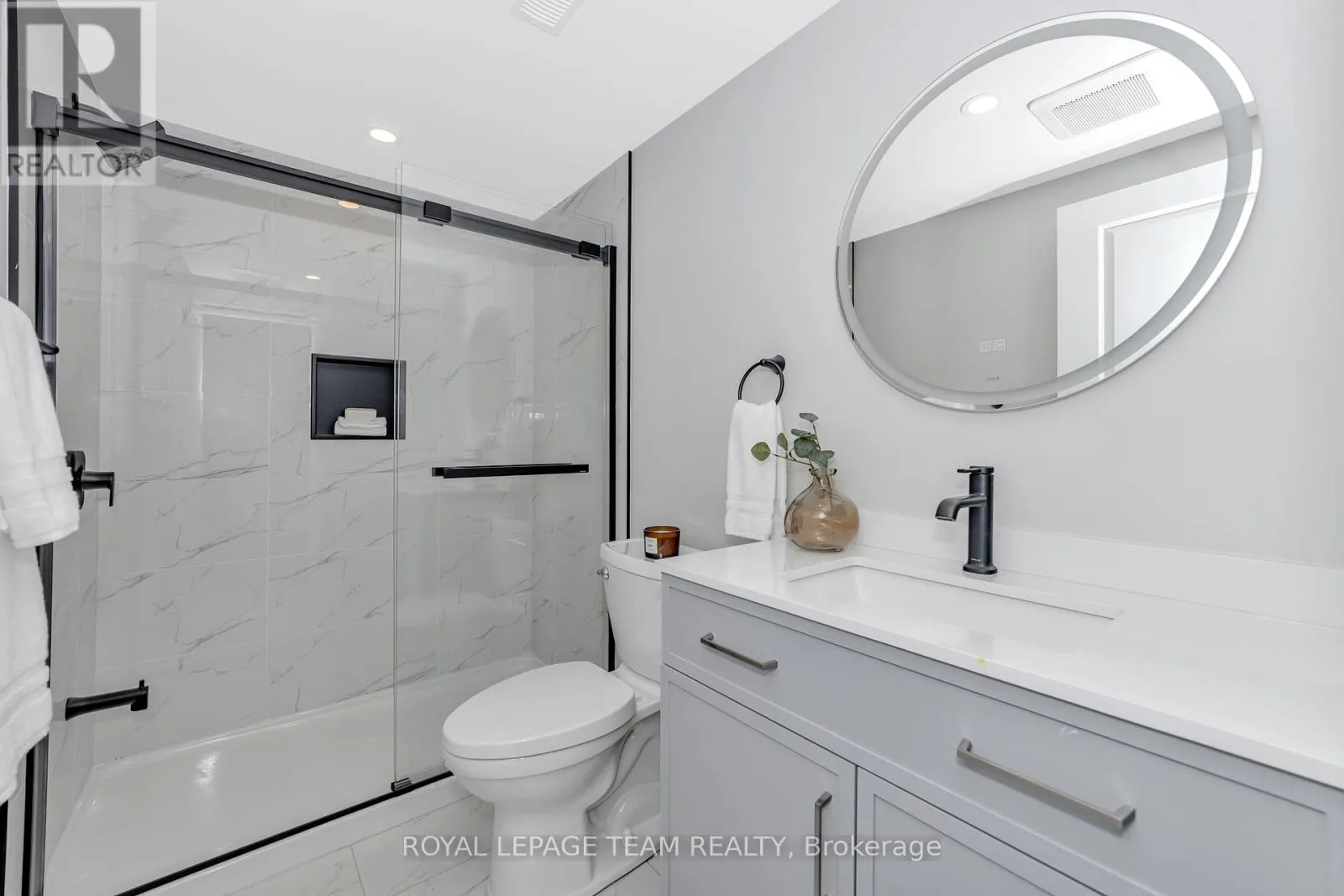 +"PublicRemarks": "Stunning 2023-built home in Kanata Lakes, perfect for multigenerational living! This move-in-ready residence offers over 3,600 sq ft of finished living space across three levels, 5 bdrms & 5 baths, blending elegance, generous proportions, and thoughtful design. Located in a family-friendly neighborhood surrounded by walking paths, parks, and top-rated schools, its ideal for growing families and multigenerational living. Main Floor Highlights: A grand entrance welcomes you with 9-ft ceilings, two-tone paint, and large windows with stylish blinds. Pot lights illuminate white oak hardwood floors, while a spacious WIC keeps outerwear organized. The designer pwdr room completes the space. The gourmet kitchen boasts a 9-ft quartz island, stylish gold-toned hardware, upgraded SS appliances, walk-in pantry, and pendant lighting. The dining room features oversized patio doors leading to a large deck, perfect for outdoor entertaining. The great room wows with a ceramic-surround fireplace, architectural beam mantle, and vaulted ceiling. A private main-floor suite includes a separate living space, full bdrm, ample closet, and an en-suite with quartz counters and a full tub/shower. Second Floor Retreat: The primary suite offers dual closets (walk-in + secondary) and a luxurious en-suite with quartz counters, a soaker tub, and an oversized glass shower. Three additional bdrms provide generous space, while the main bath features quartz counters and a separate tub/shower area. A bright upper-floor laundry room adds convenience. Finished Walkout LL: A spacious rec room is perfect for a home theatre or gym, complemented by a stylish wet bar with quartz counters. A full bath with an oversized shower and abundant storage complete this level. Better than buying new, this home offers luxury, function, and an unbeatable location! Some photos are virtually staged. 24 hours irrevocable on all offers preferred. (id:62650)"