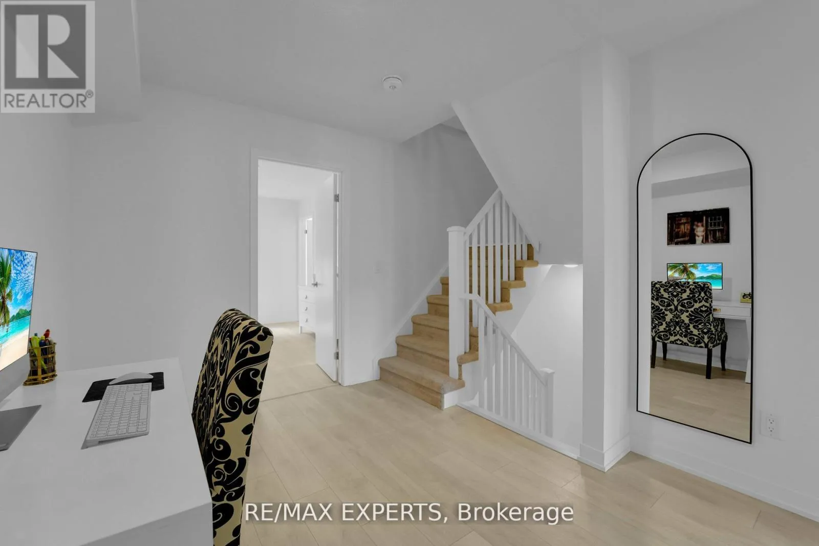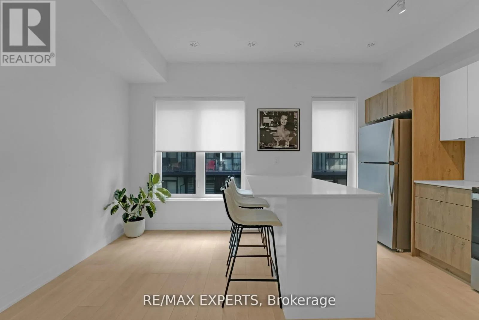 +"PublicRemarks": "Welcome to this beautifully upgraded end-unit townhome located in the sought-after community of Aldershot. Offering over 1500 square feet of meticulously designed living space, this three-bedroom, two-and-a-half-bathroom residence boasts two parking spots and is fully equipped as a connected smart home with digital keyless entry, an ecobee thermostat, camera, and security system. Inside, the home is bathed in natural light and features elegant, high-end finishes throughout. The heart of the home is the inviting kitchen, which is a chef's dream, featuring sleek new Caesarstone countertops with a striking custom waterfall island, new cabinet doors and hardware, and a brand-new sink and tap. High-end appliances, including an induction range and a stainless hood vent, complete the space. The main living area exudes warmth and modern style, anchored by beautiful engineered hardwood floors and a chic Chicago brick feature wall, creating an ideal setting for entertaining. A convenient two-piece powder room completes this level. The upper floor holds the sleeping quarters, including a spacious primary bedroom featuring a walk-in closet and a lovely three-piece ensuite with glass shower doors and all-new hardware. A charming third bedroom offers sliding glass doors leading to a juliette balcony. This level also includes a four-piece main bathroom with a high-end vanity and practical bedroom-level laundry. The property is crowned by an amazing rooftop terrace, providing the perfect space for outdoor entertaining or simply enjoying the views. The location is unbeatable for commuters, offering easy access to major highways and the GO Station. Enjoy a balanced lifestyle with nearby amenities, including the RBG, shopping, and scenic trails. (id:62650)"