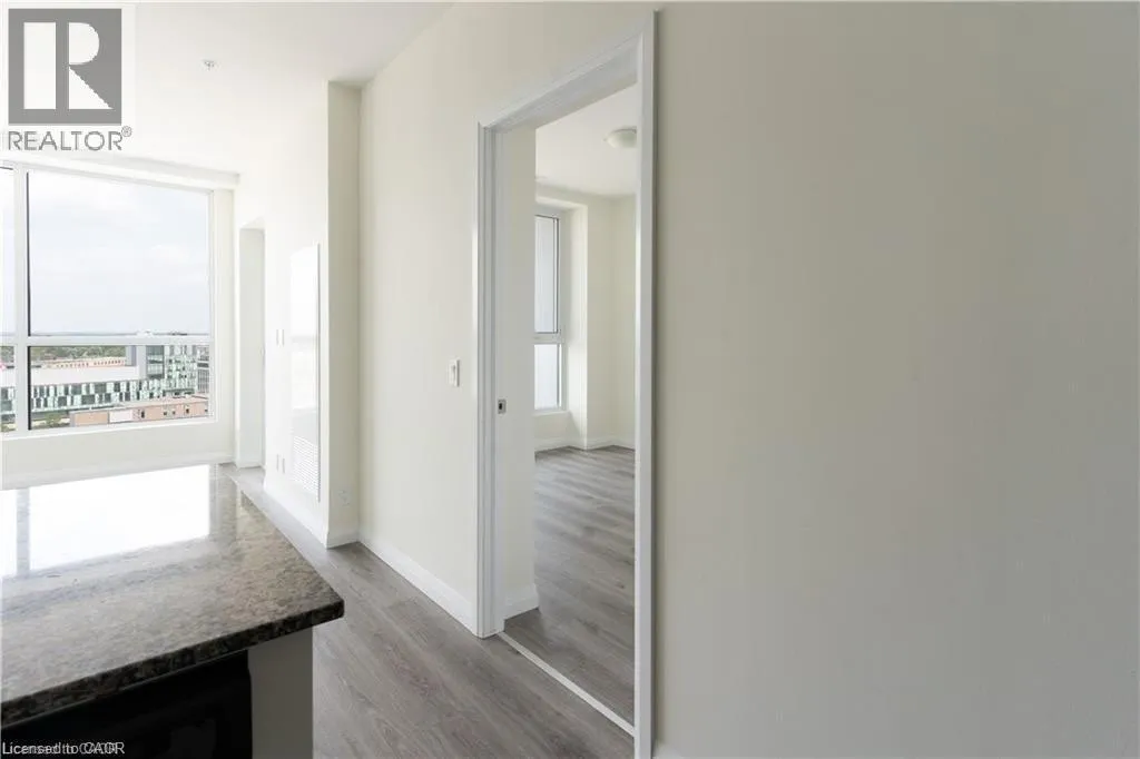 +"PublicRemarks": "Perched above its Uptown neighbors, Suite 1510, offers panoramic views and floods of morning light through its expansive windows. The convenience of Lutron automation allows you to effortlessly control custom blinds via your smartphone. With 770 interior sq ft, the open-concept layout provides ample living space in the primary rooms, enhanced by 10-foot ceilings! Suite 1510 elevates the kitchen experience with marble-patterned quartz countertops, a matching slab backsplash, integrated appliances, and modern two-toned cabinetry, ensuring that you never run out of storage. An exceptional feature of this unit is the custom-built storage solution in the den area, complete with wall-to-wall cabinetry for effortless access. The master bedroom offers generous space for a full-size bedroom set or the option to incorporate a tailored closet solution. Residents at Circa 1877 enjoy access to leading amenities, including a stunning outdoor salt water pool, professionally designed co-working space, fitness center, yoga area, indoor/outdoor party room, and an exquisite lobby library. The building's proximity to an iOn LRT stop ensures seamless connectivity throughout Kitchener and Waterloo, not to mention, it is just steps away from Uptown Waterloo. Don't miss the opportunity to tour this remarkable unit. (id:62650)"