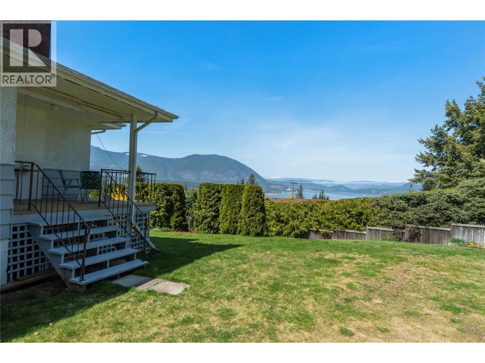 +"PublicRemarks": "Experience stunning panoramic views overlooking Shuswap Lake from this well-loved home in one of Salmon Arm’s most sought-after neighborhoods. The property offers a beautifully landscaped, fully fenced yard with excellent access for boat or RV storage, making it ideal for those who love to enjoy the outdoors. 0.36-acre corner lot. This spacious home features four bedrooms and two-and-a-half bathrooms, with potential for an in-law suite on the lower level. For a potential suite there is already a finished kitchen, living room with a wood-burning fireplace insert, bathroom, shared laundry, and potential to add a second bedroom—perfect for extended family or guests. The main floor is thoughtfully laid out with three bedrooms, including a primary bedroom with a private half bath. Pride of ownership is evident throughout. Enjoy two decks—one covered—where you can take in the incredible lake views year-round. Additional highlights include: Central air and central vacuum, underground sprinklers for plants only not grass, Carport plus tons of parking, including a pull through driveway, Negotiable large coverall for extra covered parking, Ample outdoor space with room for all your toys or check out your options to build a shop or garage, Garden shed, an outside storage room off the house in the carport plus a small second storage room off carport under the stairs. This property combines comfort, functionality, and unbeatable views—an exceptional opportunity. (id:62650)"