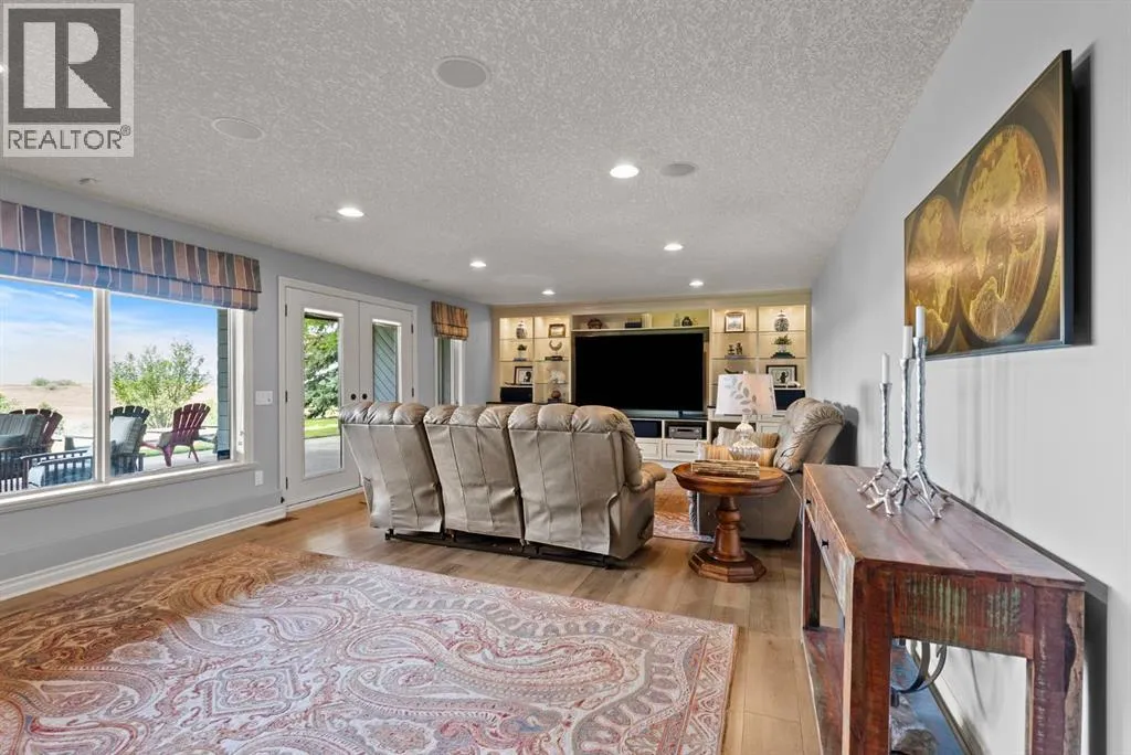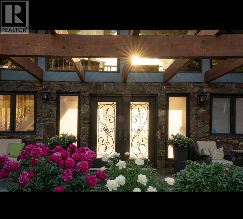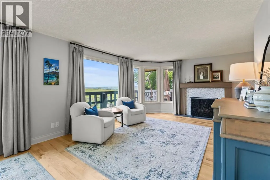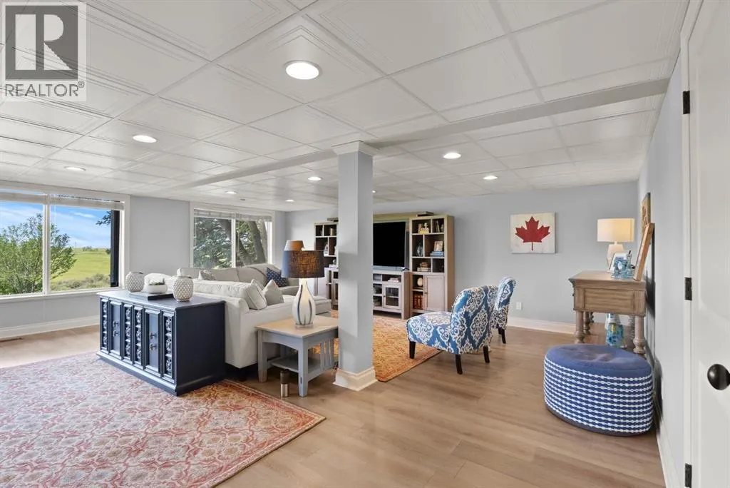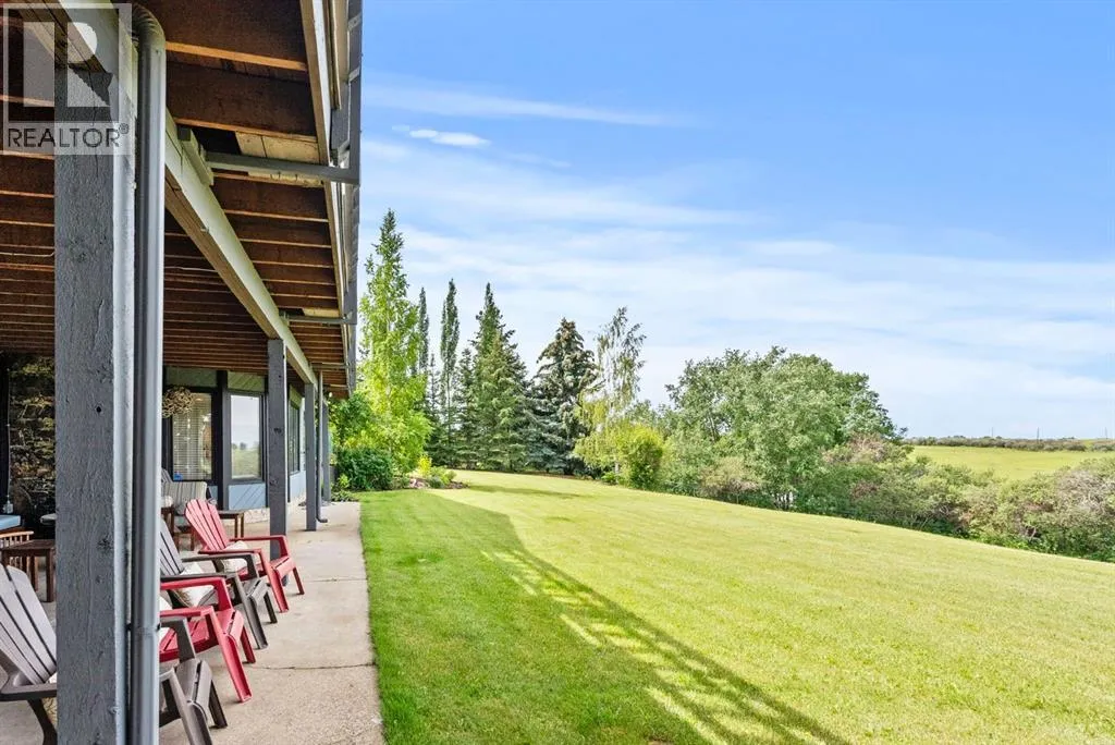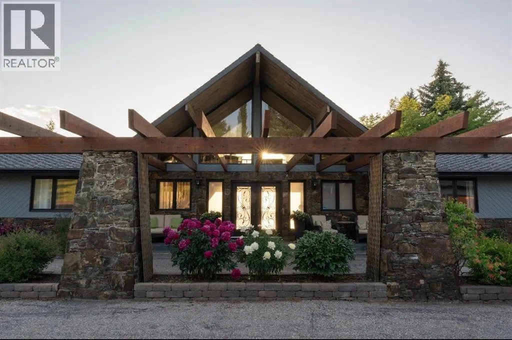 privacy—just minutes from Calgary’s west edge.Solidly and securely constructed by the well-known Peters Brothers Construction, the home reflects a level of craftsmanship and build quality that continues to stand the test of time. The main level showcases 22’ cedar ceilings, expansive picture windows, rich custom woodwork, and a dramatic stone wood-burning fireplace—hallmarks of enduring construction paired with modern comfort.The chef’s kitchen features high-end appliances, granite countertops, a large island with seating, custom cabinetry, and a statement copper range hood, opening to a breakfast nook with built-in banquette and fireplace. A formal dining room connects directly to an outdoor patio dining area designed to capture sweeping mountain vistas and sunsets.The layout is ideally suited for large families or multigenerational living, with a spacious main-floor bedroom wing and a private lower level offering flexible living arrangements. The primary suite includes a fireplace, spa-inspired ensuite with in-floor heating, and a generous walk-in closet. Two additional large bedrooms, a private office with coffered ceilings, an upper loft, and a spacious laundry/mudroom with custom cabinetry complete the main floor.The fully finished walkout basement further enhances the home’s versatility, featuring a nanny or in-law suite with private living area and ensuite, along with a large recreation room, bar/kitchenette, multiple family spaces, an additional wood-burning fireplace, steam shower, and extensive custom storage. Two dedic ated mechanical rooms house 3 furnaces, 2 A/C units, and 4 hot water tanks, providing infrastructure capacity well suited to a larger household.Additional highlights include two separate 3-car garages—one attached and one detached, Armour shake shingles, sound-reducing insulation, paved driveway, fully fenced chain-link yard, underground irrigation system, mature landscaping, integrated security system, and multiple private outdoor living areas. Water service is via a co-op system (not city water).Ideally located 5 minutes to Highway 1 and Stoney Trail, approximately 20 minutes to downtown, Foothills Hospital, and the University, and under an hour to Canmore and Banff. Close to top public and private schools, city amenities, horse boarding, and the mountains. A rare opportunity to own a home of true character, scale, and flexibility in one of the west side’s most tightly held communities. (id:62650)