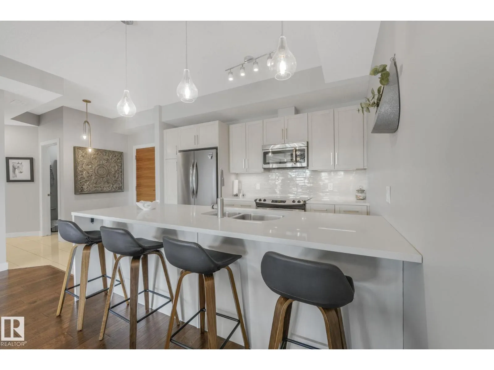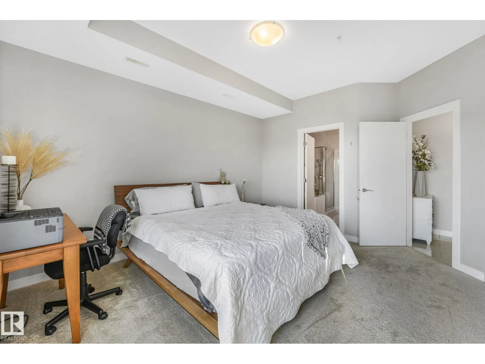 +"PublicRemarks": "Experience luxury living at Brass III The Leger in the desirable Riverbend. This top-floor unit offers city views, showcasing craftsmanship & a well functioning floorplan. The bright, open layout features 9 ft ceilings, engineered hardwood, granite countertops, S/S appliances, maple shaker cabinets & an island w/eating bar. Living area will accommodate most furniture arrangements. Bedrooms are on opposite ends for privacy. The spacious primary suite includes a walk-in closet w/built-ins and a 4pc ensuite w/soaker tub & glass shower. 2nd bedroom for guest stays or home office/hobby studio. 3pc bathroom w/matching finishing palette. Enjoy the balcony for evening bbqs, central A/C, in-suite laundry. Double tandem underground parking stalls w/storage. Well managed complex w/healthy reserve fund. Pet-friendly & ideally located near Terwillegar Rec Centre, schools, parks & all servicing amenities. This residence combines elegance, comfort & convenience in one of Edmonton’s most sought-after communities. (id:62650)"