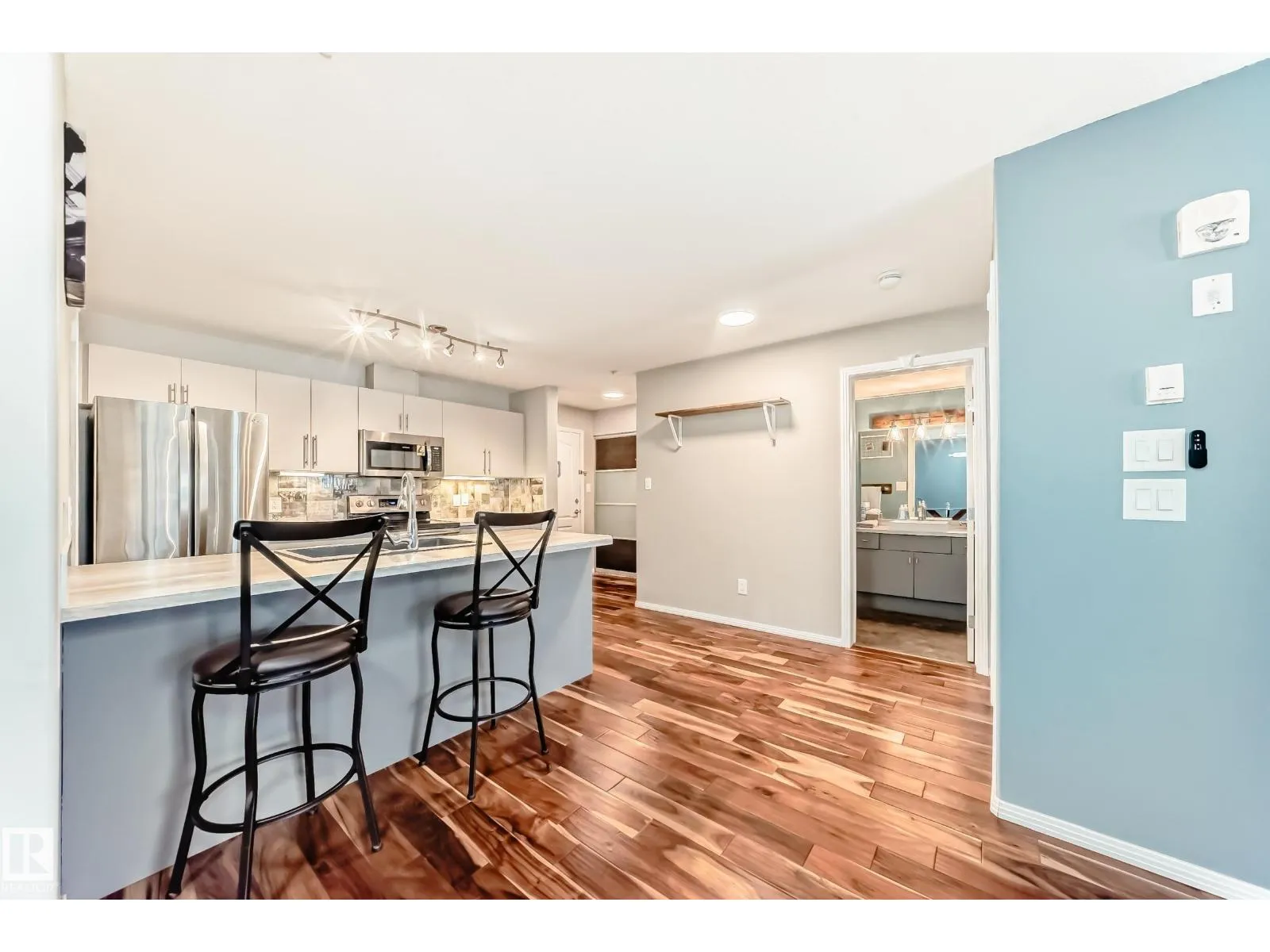 +"PublicRemarks": "STUNNING & beautifully RENOVATED 1 bedroom, 1 bathroom condo in The Ravines at Hermitage with TWO TITLED parking stalls—one heated underground with storage and one covered, energized surface stall near the front entrance. Extensive renovations include new sinks, upgraded laminate countertops with eating bar, ceramic tile backsplash, modern hardware, soft-close drawers, resurfaced cabinetry, and custom pots & pans drawers. Gorgeous engineered hardwood flooring flows through the living area, kitchen, and bedroom, with durable vinyl plank in the bathroom and laundry room. All closets feature custom built-ins and new doors. Windows and patio doors are tinted to protect the hardwood. Enjoy the private deck with tile flooring and a natural gas BBQ line. Condo fees include heat and water. Small pets allowed with board approval. Fantastic location close to ravine trails, shopping, Yellowhead Trail, and Anthony Henday. (id:62650)"