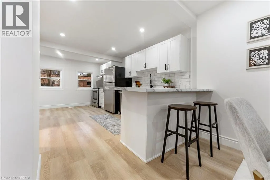 +"PublicRemarks": "Welcome to 581 John Street North in the City of Hamilton. This beautifully updated 3-bedroom, 2-bathroom, 2.5-storey home is perfectly positioned for outdoor enthusiasts—just steps from Lake Ontario, Pier 8, Bayfront Park, the marina, the Royal Hamilton Yacht Club, and miles of stunning waterfront walking and biking trails. Completely updated and move-in ready, the main floor offers a bright, open-concept design featuring a modern kitchen with a breakfast peninsula overlooking the spacious living and dining areas. A separate, conveniently located main-floor laundry room enhances everyday comfort. The second floor includes several generous bedrooms and a modern full bathroom, while the expansive third-floor loft provides a versatile bonus space ideal for an additional bedroom, home office, or family room. The full, unfinished basement with a separate side entrance presents excellent potential for future living space or perhaps even an in-law setup; the sky is the limit! Outside, enjoy a private deck overlooking the fully fenced backyard—perfect for entertaining or relaxing on warm summer evenings. Centrally located, this home is close to all major amenities including grocery stores, schools, and is within walking distance to the vibrant restaurants, cafés, and boutiques along James Street North. Easy access to HWY 403 and the QEW adds to the convenience. Don’t miss your opportunity to view this exceptional property—book your showing today! (id:62650)"
