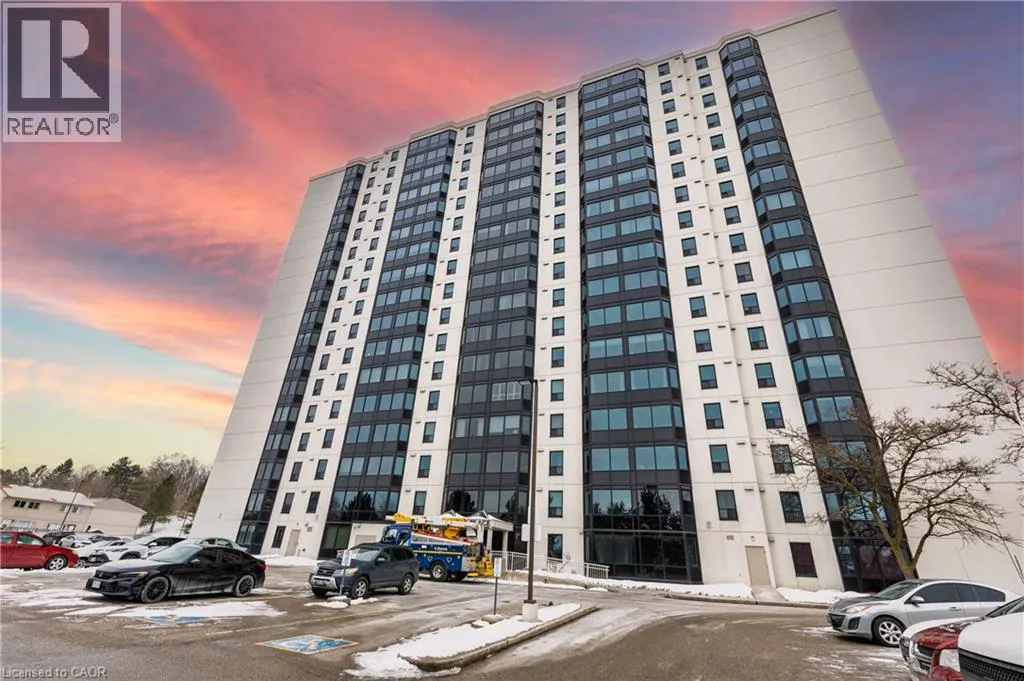 +"PublicRemarks": "WELCOME TO THE WESTVIEW CONDOS! This 1 Bedroom & 1 Bathroom unit floorplan has 695 SqFt and a well appointed layout. Nicely updated unit, bright, spacious, ready-to-move-in, offering panoramic views from the 12th floor in well maintained Energy Efficient building. Freshly painted throughout. The kitchen comes equipped with newer appliances (Fridge, Stove, Dishwasher) and can easily fit a dinette table for lunch on the go. You'll also notice the updated 4-piece bathroom with a surround shower-tub combo. The in-unit laundry is super convenient and equipped with a newer stackable Washer & Dryer. Wall-Air Conditioning unit is also included. All windows replaced in May 2023. Water tank is owned and replaced in July 2025. Very low condo fees with water usage included. Unit comes with 1 cover parking spot, also owned. Extra building amenities include: Exercise room, party room, sauna and indoor hydro pool. Excellent location close to all amenities, schools, parks, walking trails, Conestoga College and fast access to Highway 401. Perfect for a first time home buyer, someone downsizing or an investor. (id:62650)"