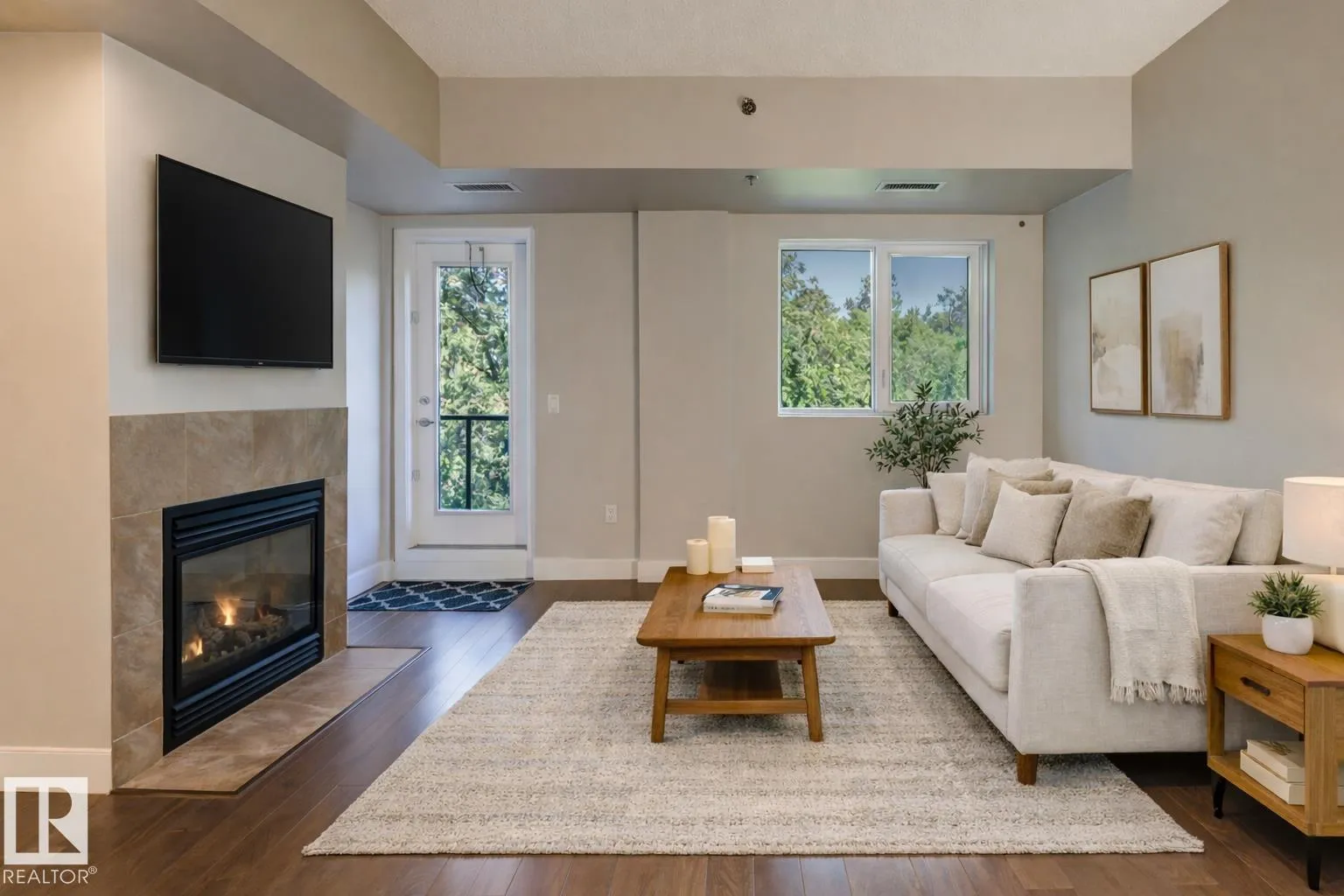 +"PublicRemarks": "Welcome to Trinity Point, a concrete and steel building backing directly onto the Mill Creek Ravine. This two-bedroom home offers a large primary bedroom with walk-in closet and ensuite, plus a second bedroom that works well for guests, a home office, or creative space. The open layout features 9-foot ceilings, engineered hardwood, a gas fireplace, and central air conditioning. The kitchen is built for people who actually cook, with a gas cooktop, built-in oven, granite counters, and an oversized island. Step out to your private balcony overlooking the ravine, then head out: Whyte Ave, Downtown, Ritchie Market, and the River Valley are all minutes away. A second bathroom, oversized laundry room, storage room, underground parking, pet-friendly policies, and an on-site gym make day-to-day living easy. Solid construction, green space out back, city life out front. (id:62783)"