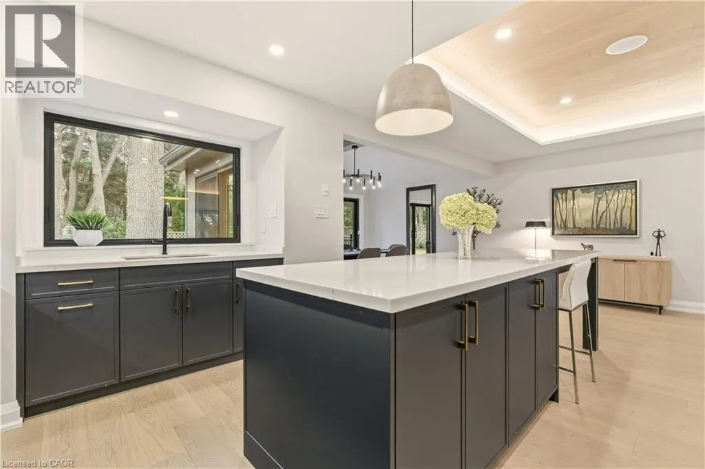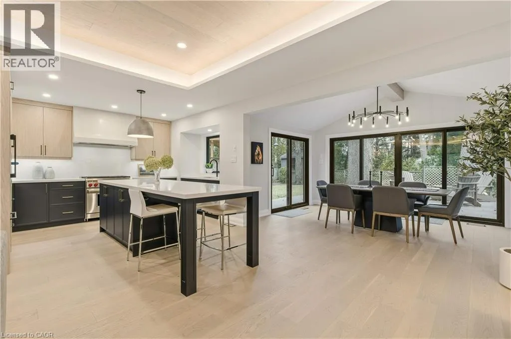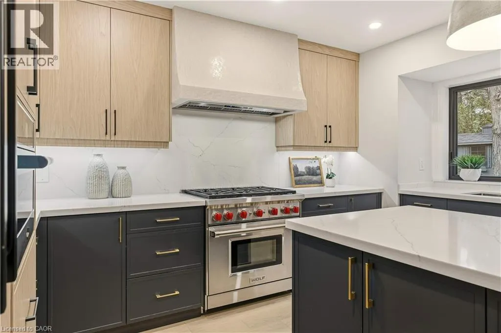 +"PublicRemarks": "Sophisticated bungalow living in the heart of Aldershot! Welcome to 759 Shadeland Ave. Meticulously renovated from top to bottom with designer details throughout. Impressive millwork and built-ins, white oak flooring, and heated floors on all tiled surfaces. The focal point is the gourmet kitchen with oversized island, Wolf gas range, and custom plaster hood. Gorgeous dining room with vaulted ceilings and wall to wall sliding doors overlooking the private yard. Sleek gas fireplace and inviting living room with accent ceiling. In-ceiling SONOS speakers throughout with multiple zones including backyard. Lower level features an additional bedroom, full bath and rec room. Convenient laundry room off the garage with heated floors and lots of storage. Garage has rough-in for electric car charger. Private backyard with composite deck. Enjoy the tranquillity of the neighbourhood with its gorgeous tree canopy and proximity to the waterfront and Burlington Golf & Country Club. Close to downtown, shopping GO Train, and schools. (id:62650)"