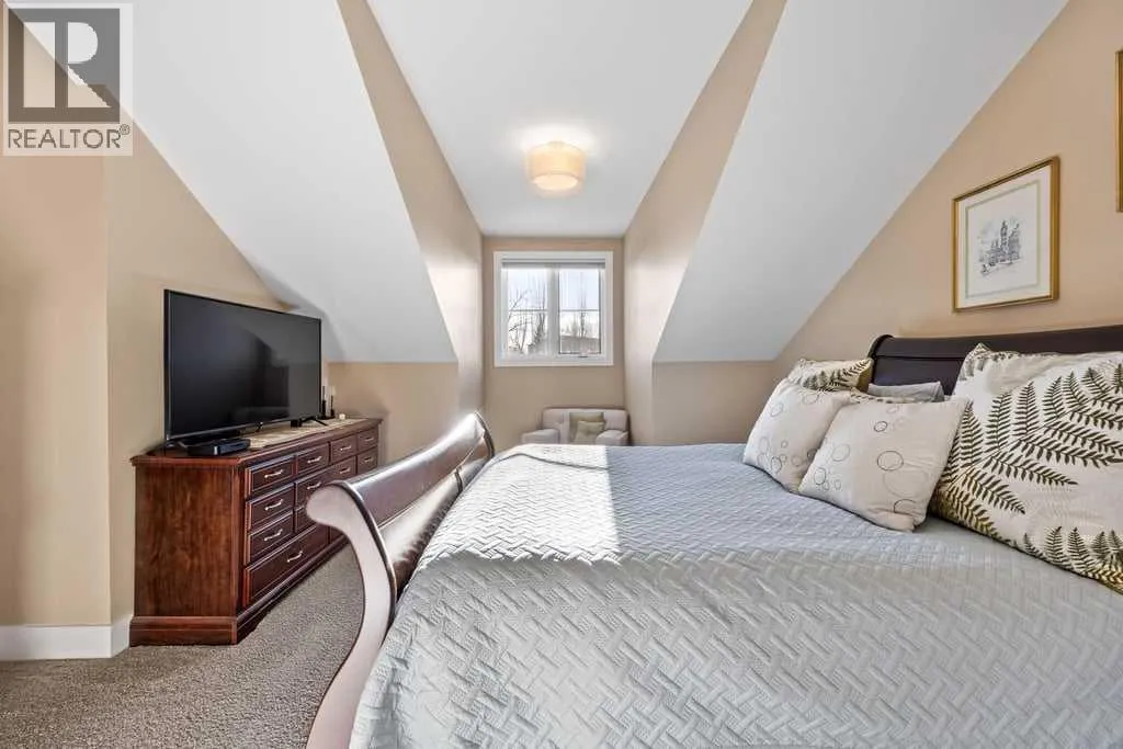 +"PublicRemarks": "Welcome to refined, low-maintenance living in the heart of West Springs. This bright and beautifully laid-out upper-level bungalow-style townhome offers over 1100 sq. ft. of thoughtfully designed space with soaring 9-foot ceilings and engineered hardwood throughout. The open-concept kitchen is both stylish and functional, featuring rich maple cabinetry, ample counter space, a peninsula island, and a generous pantry—perfect for everyday living and entertaining. Retreat to the spacious primary suite complete with a walk-in closet and private ensuite, while a second bedroom and full bath provide flexibility for guests or a home office. Enjoy morning coffee or evening relaxation on your private covered balcony, and appreciate the rare oversized 27-foot attached garage with exceptional storage. Ideally located steps from shopping, dining, transit, top-rated schools, and just minutes to downtown, this home delivers comfort, convenience, and exceptional value in one of Calgary’s most sought-after southwest communities. (id:62650)"
