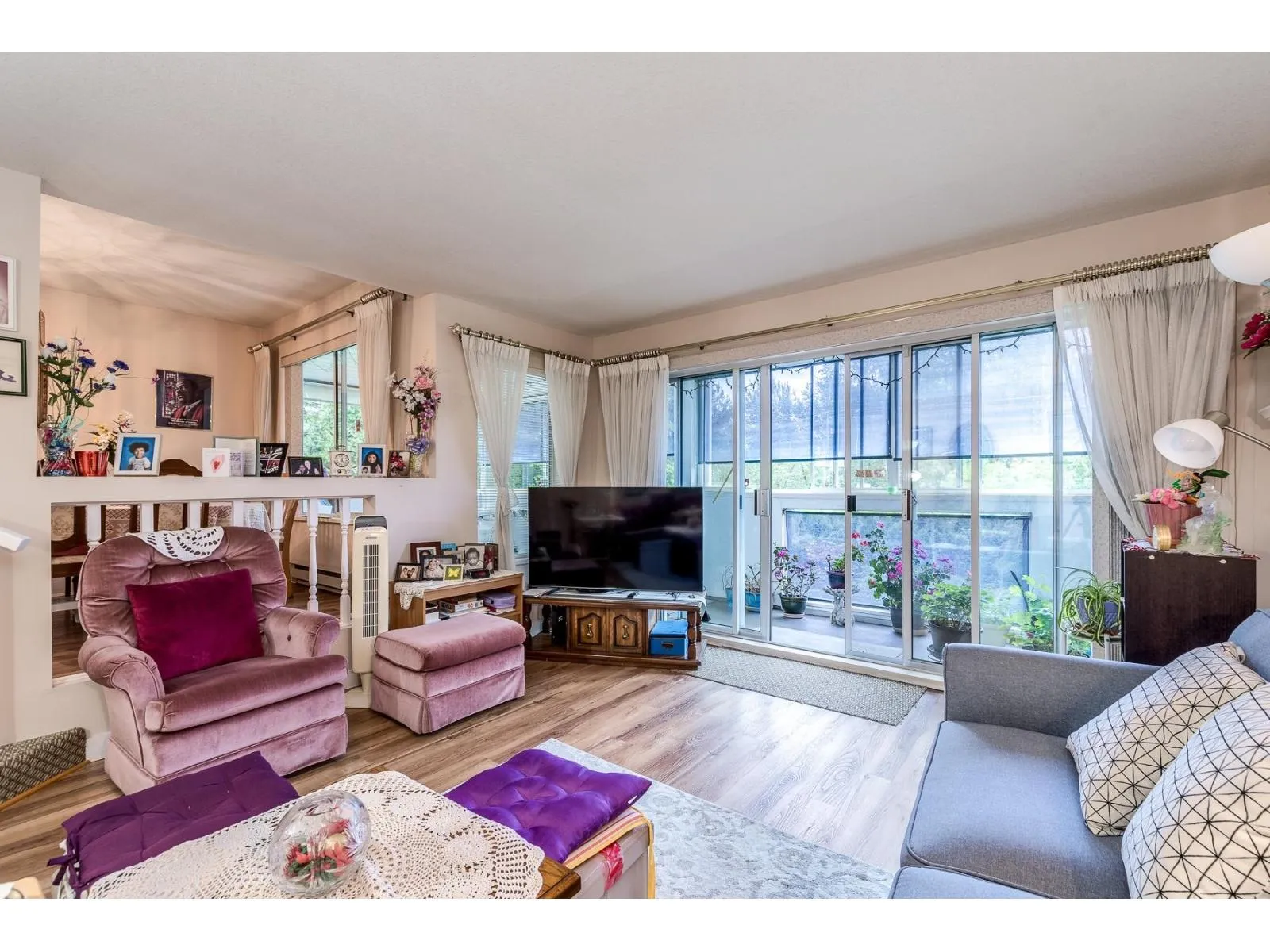 +"PublicRemarks": "Located in a quiet, gated, 55+ adult-oriented complex at the end of a cul-de-sac. This ground floor entry end unit is spacious and bright with 3 bedrooms, 2 bathrooms, and over 1,400 sqft of living space. Huge oak kitchen with wall oven, stove top, breakfast bar, lots of cupboards, and open eating area. Formal dining room next to sunken living room with access to large solarium sundeck with southern view. Primary bedroom with walk-through closet and private 3 piece ensuite. 2 additional good size bedrooms, 4 piece main bath, and huge laundry room. Well maintained building with lush gardens. Walking distance of shopping, transit, and amenities. Bonus 2 parking - 1 open and 1 private garage, roof replaced in 2021. (id:62650)"