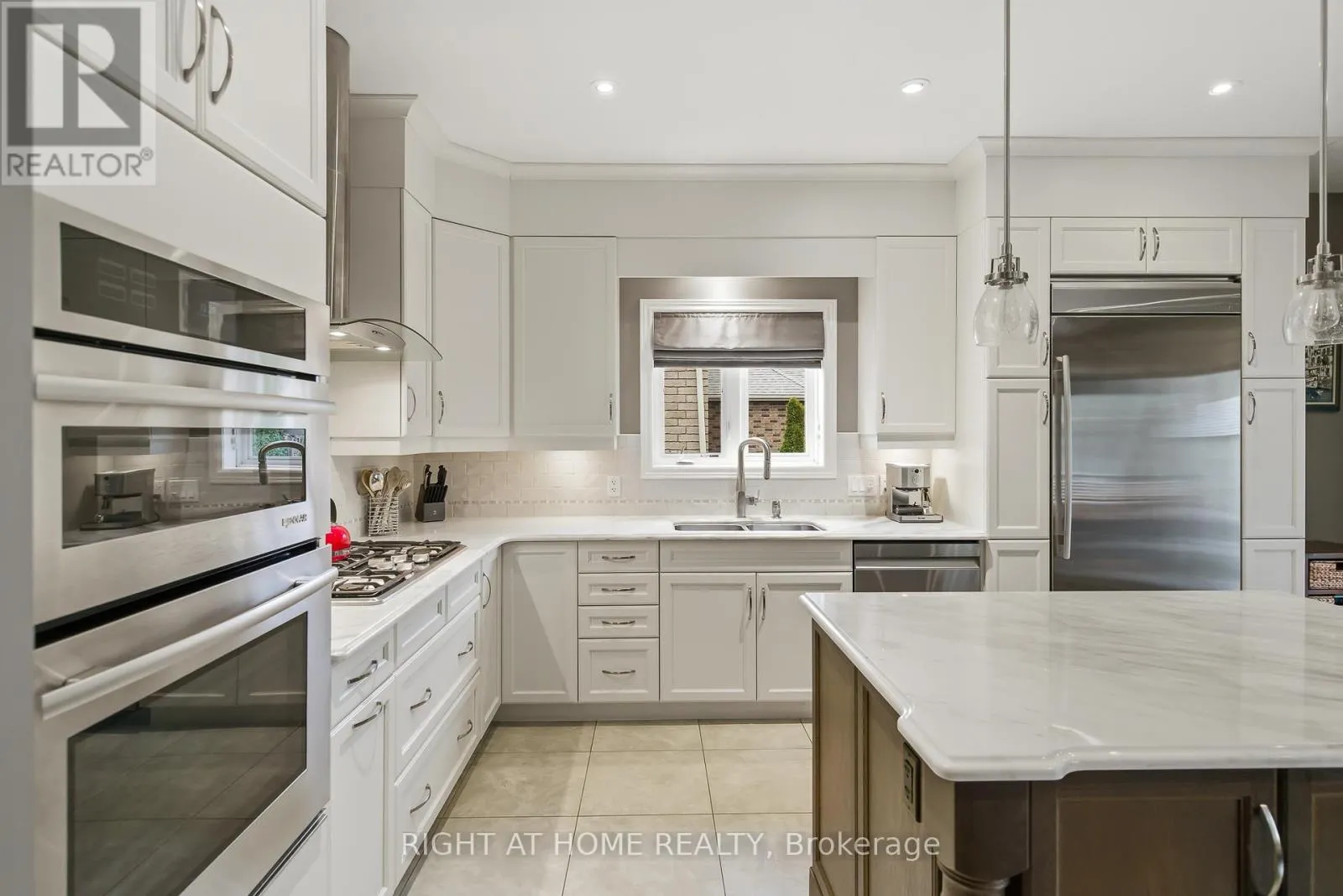 has been meticulously cared for, approx. 2800 sqft. 2 bedrooms up and 2 down, plus 3 bathrooms. Plenty of space for your enjoyment plus guests to visit. The outer finishes are high-end luxury stone and brick, and includes a large concrete driveway and front porch to relax and watch the world go by. 9 ft ceilings, a combination of porcelain & hardwood floors. 2 custom up-market gas fireplaces. All windows have custom window coverings. The kitchen includes deluxe high-end appliances by Jennair, stone countertops and centre island perfect for entertaining. There is a direct walk-out to the lush outdoor space, showcasing a stone kitchenette with built-in gas BBQ, custom stone patio, covered porch, mature foliage and privacy, plus a newer garden shed. Main floor living at its best with 2 spacious bedrooms and 2 bathrooms, with ensuite and walk-in closet in primary bed. Lower level is meticulous, with large second living room, tons of storage, and 2 bedrooms, one currently being used as an office, and 3-pc bath. Nothing to do but move in and enjoy your new lifestyle in Niagara-on-the-Lake! (id:62650)