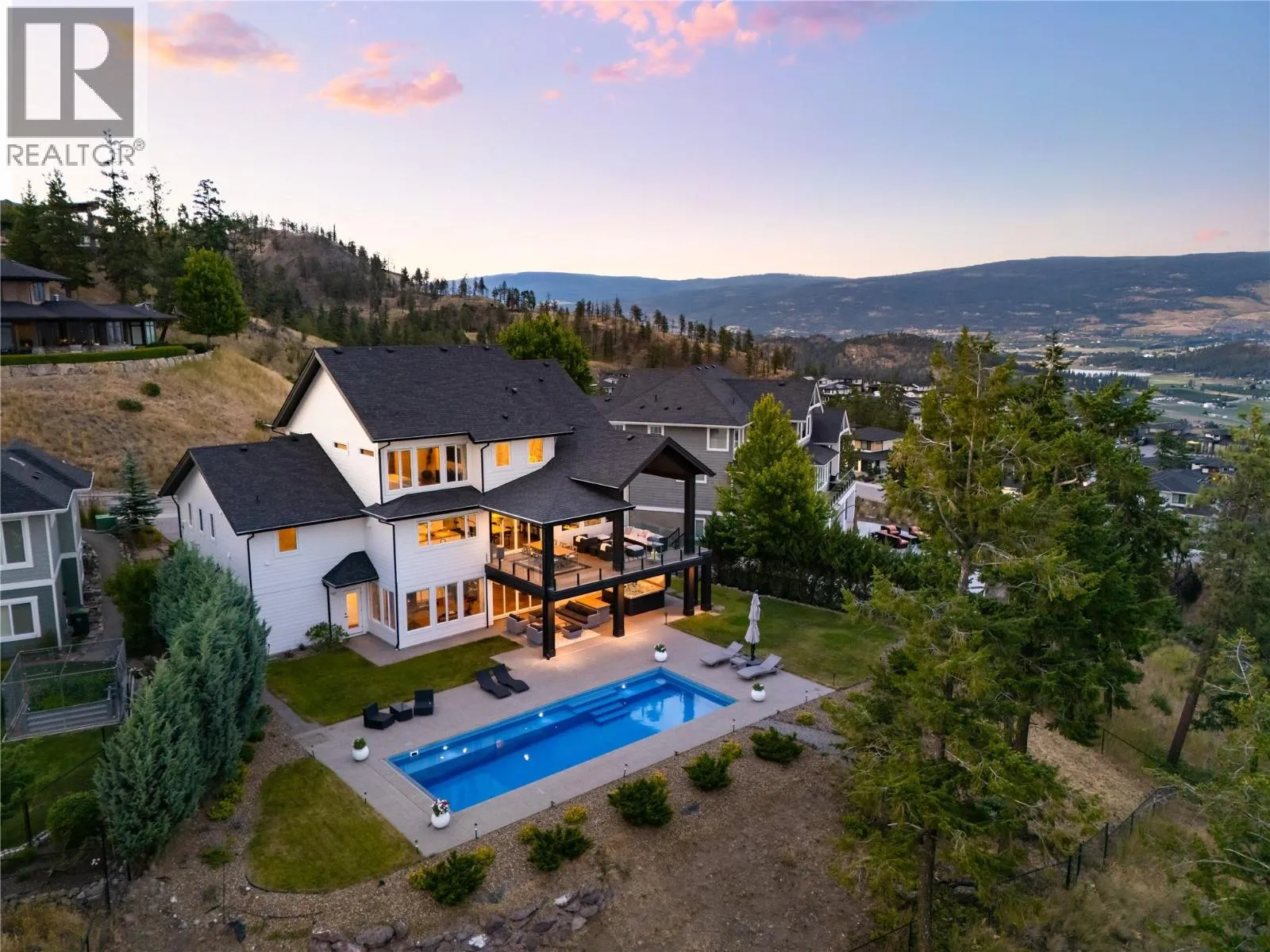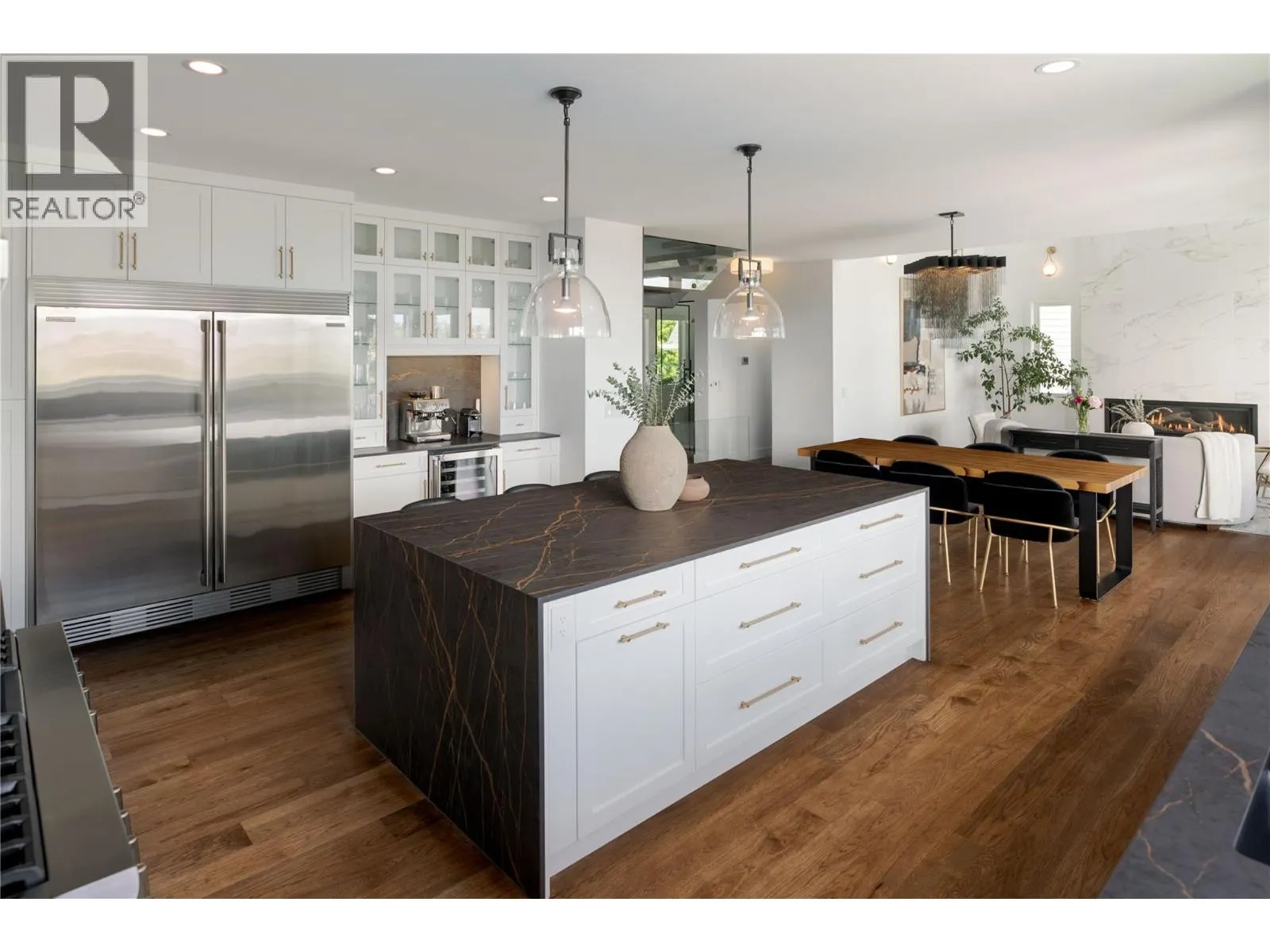 +"PublicRemarks": "Completely renovated from top to bottom, this breathtaking residence embodies refined living in Wilden—Kelowna’s most coveted enclave. The striking modern exterior with crisp white & black accents makes a bold statement, setting the stage for the exceptional design inside. Expansive windows frame captivating lake & mountain views, while soaring ceilings & a stunning floor-to-ceiling fireplace create a grand yet inviting atmosphere. The designer kitchen is a showpiece, featuring a massive Dekton island, 6-burner Thermador range, butler’s pantry, beverage centre & seamless flow to the covered deck—ideal for entertaining. Upstairs, the primary suite is a private sanctuary with sweeping views & an ensuite that rivals a luxury spa, complete with heated floors & a double rain shower. Two additional bedrooms & a full bath complete the upper floor. The lower level offers ultimate versatility with engineered hardwood: an elegant family lounge, custom wine cellar, gym space, guest bedroom & a bathroom with direct access to the outdoor retreat. Step outside to the saltwater pool with auto cover, hot tub & multiple lounging areas—surrounded by protected green space for unparalleled privacy. Notable features include real hardwood throughout the rest of the home, a 3-zone furnace, 240V EV-ready 3-car garage, electric window coverings, UV-filtering windows & solid 8ft doors. A true legacy home—where sophisticated design meets everyday comfort in an irreplaceable setting. (id:62650)"