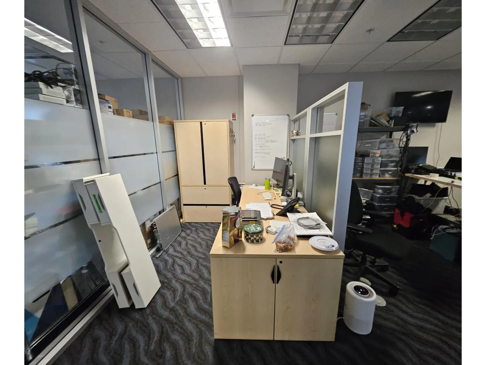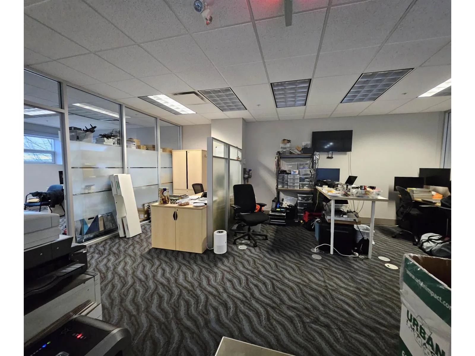 Two strata units sold together totaling 4,267 SF in a prime IL-zoned Cloverdale location. The property includes approximately 1,200 SF of warehouse space featuring 20′ clear ceiling height, a 14′ grade-level loading door, 3-phase power, and a 400 SF mezzanine. The office component is fully built out with 10 executive professional offices, a boardroom, and a kitchenette, offering a