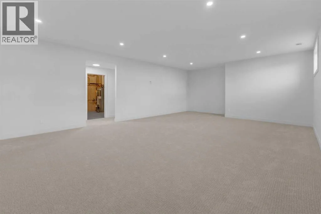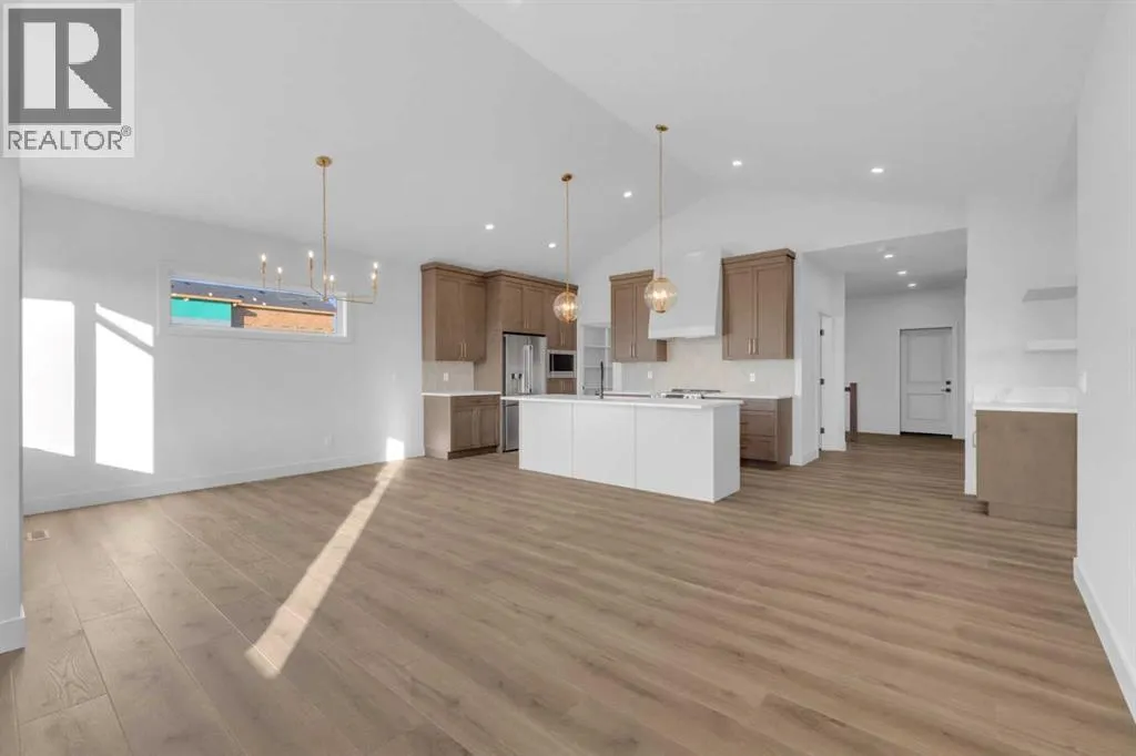 +"PublicRemarks": "Incredible find! A brand new luxury bungalow in the highly desirable Evergreen community. Step inside to a spacious front & garage entryway with a custom built-in hook wall with bench. The 23'5x23 attached garage is fully finished and roughed-in for heat.The main floor boasts a stunning open-concept design with a living room, dining area, and kitchen. The kitchen is a true showpiece with custom maple cabinetry with quartz countertops, a covered over-the-range hood, large island, full tile backsplash, under-cabinet lighting, stainless steel appliances (including fridge with water/ice), a walk-in pantry with custom wood shelving, plus a convenient dry bar/coffee bar area with floating shelves. The living room is highlighted by a cozy gas fireplace with stone surround that soars to the vaulted ceiling and windows. From the dining area, step out through the garden door to the deck and south facing yard.Also on the main level are two bedrooms, two bathrooms, and laundry room. The primary suite features a spa-like 5-piece ensuite with a custom tiled shower that has glass enclosures, a water closet, a large soaker tub, dual sink vanity, and a walk-in closet that connects directly to the laundry room. The laundry area is beautifully finished with custom cabinetry, counterspace, and includes a stacking washer & dryer.The fully finished basement offers a massive family room, two additional bedrooms, a 4-piece bathroom, plus storage and mechanical room. Additional features include new home warranty, and roughed-in in-floor heat in the basement.Evergreen is one of Red Deer’s premier locations, offering walking trails, a pond, park space, and every amenity at your fingertips—from shopping, dining, and medical care to fitness centers and schools. Outdoor enthusiasts will also love being minutes from two golf courses, Discovery Canyon, Three Mile Bend dog park, pickleball courts, and endless trails. This home truly has it all! (id:62650)"