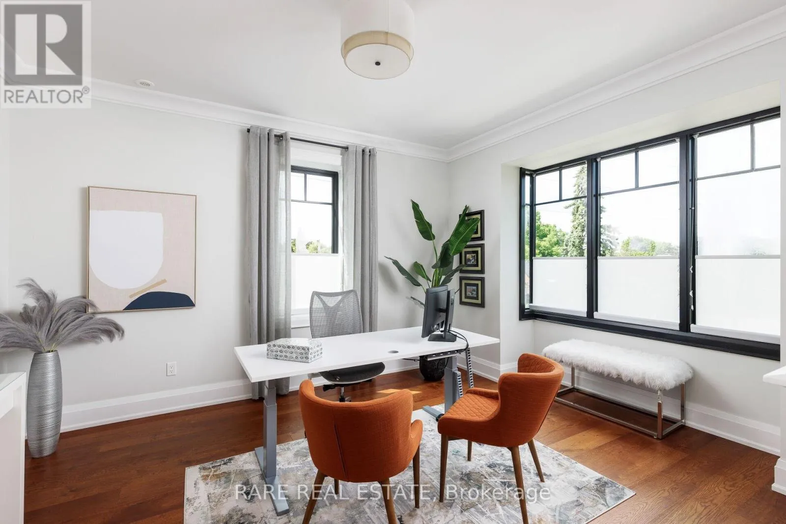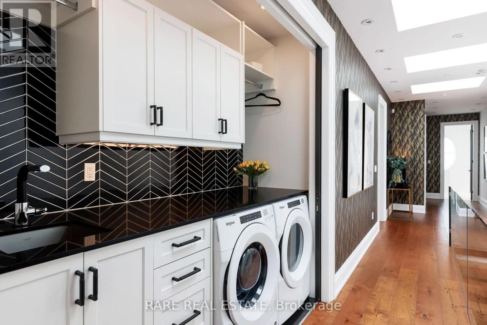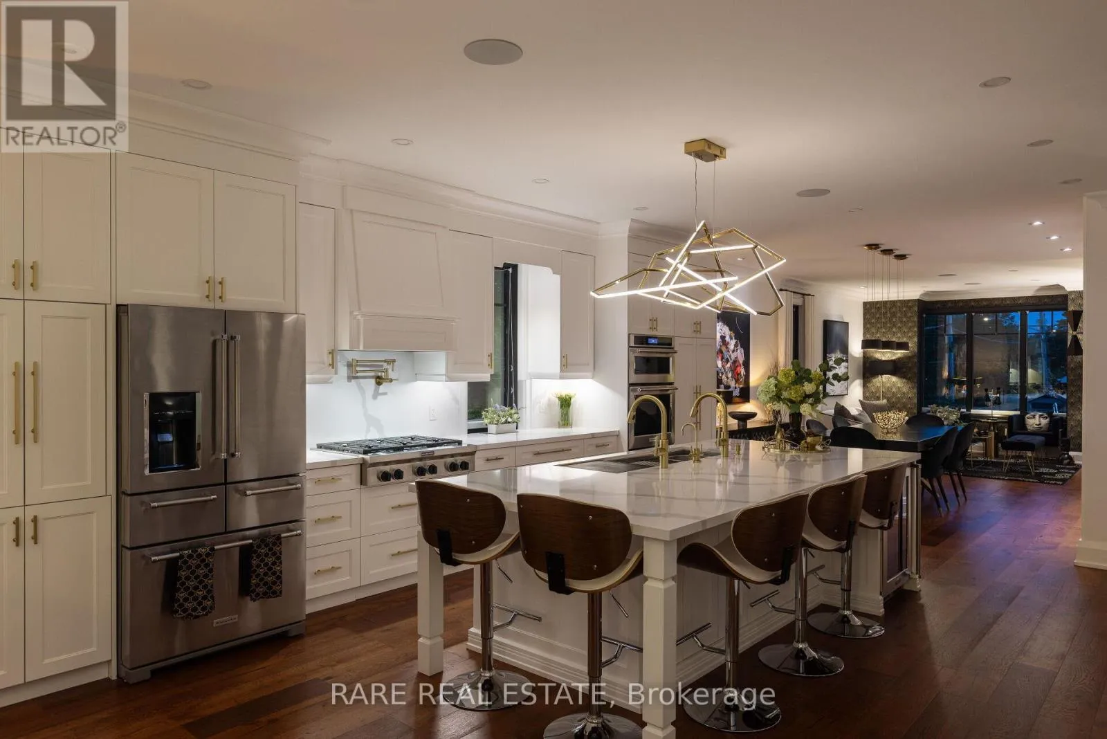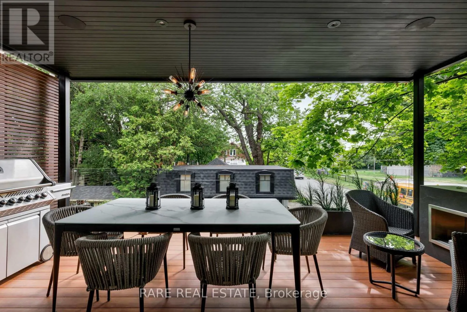 +"PublicRemarks": "A home so unique and exceptional, it needs to be seen in person to experience the level of passion for design and architecture, and attention to every detail. Full features list available on the virtual tour website. This home has an abundance of features and technology for comfortable everyday living and elevated entertaining. 3,672 sqft above grade space, no basement, 9 foot ceilings on all levels and 5 above grade bedrooms. Situated on a majestic corner lot with picturesque landscaping, wide backyard, views of the water and steps to the waterfront parks and Lake Shore shops. A home where luxury and warmth come together. Every inch of this home has been masterfully curated with the finest quality finishes and technologies, creating a space that is both breathtaking and inviting. Fully open main level with floating wood and glass staircase that fills the room with sunlight. Designer kitchen with a massive 10 ft kitchen island, and 5 foot Galley Kitchen workstation sink with triple faucets. Double door walk out to the covered terrace overlooking the backyard gardens. Luxurious and relaxing primary suite with views of the sunrise over the water. Complete with his walk-in closet and her walk-in dressing room with custom wall to wall cabinets. The backyard's professionally designed landscaping envelops the home in natural beauty and privacy, a cottage setting in the city. The garage completes the outdoor entertaining with a cabana bar glass garage door and rough in mini kitchen. Rough-in kitchen on lower level for in-law suite. Hi-Velocity heat/cool air system with 4 thermostat control zones (1st floor, 2nd floor, 3rd floor, Principal suite). 6 zone in-floor radiant heating on ground level and full bathrooms. Voice & phone controlled smart home integration with custom Lutron lighting control system and Sonos sound system. 3 Samsung 65 inch Frame TVs integrated into the fireplace walls with Sonos play bars. Dressing room can be converted back to the 5th bedroom. (id:62650)"
