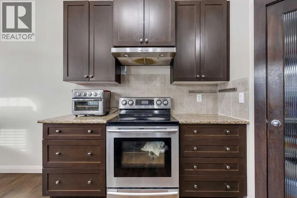 +"PublicRemarks": "Stunning top-floor corner unit offering unobstructed west-facing views of the mountains, city skyline, and ravine/green space. This immaculate 811 sq. ft. 2-bedroom, 2-bathroom condo features an open-concept layout with 9-foot ceilings and expansive windows that flood the home with natural light.The kitchen is beautifully appointed with quartz countertops, an undermount sink, full-height subway tile backsplash, upgraded stainless steel appliances, 42” upper cabinets, pantry, and a sit-up breakfast bar. Luxury vinyl plank flooring flows throughout the main living areas, complemented by upgraded lighting and plumbing fixtures.The spacious living and dining area opens to a west-facing balcony with a gas BBQ line, panoramic views, overlooking the ravine and walking paths. Perfect for relaxing sunsets and outdoor enjoyment.The primary bedroom showcases ravine views and includes a 3-piece ensuite with a walk-in shower featuring a corner bench, stone countertop vanity, tile flooring, and an upgraded ceiling fan with remote. The second bedroom is generously sized with a deep closet and easy access to the 4-piece main bathroom, also finished with tile flooring and stone countertops.Additional highlights include central air conditioning, in-suite laundry, a large welcoming entry, titled underground heated parking, and an assigned storage unit.Located in the desirable community of Copperfield, with quick access to Stoney Trail and Deerfoot Trail, plus nearby shopping, restaurants, schools, parks, public transit, and extensive walking paths. Pride of ownership is evident—this unit shows exceptionally well. (id:62650)"