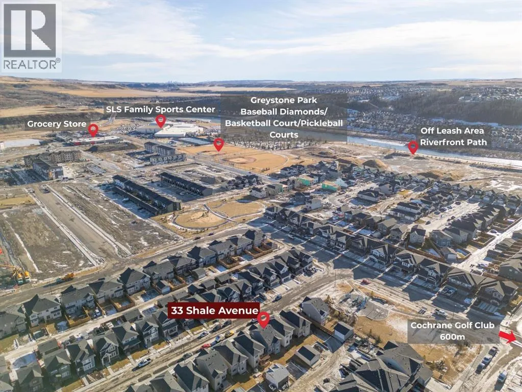 Welcome to 33 Shale Ave, located in the highly desirable Greystone community, this 2024 built, bright and beautifully finished home offers a modern layout, thoughtful design, and fantastic future potential. The main floor features a warm and inviting living room with wide plank flooring and large windows, flowing seamlessly into a stylish kitchen complete with quartz countertops, sleek cabinetry, stainless