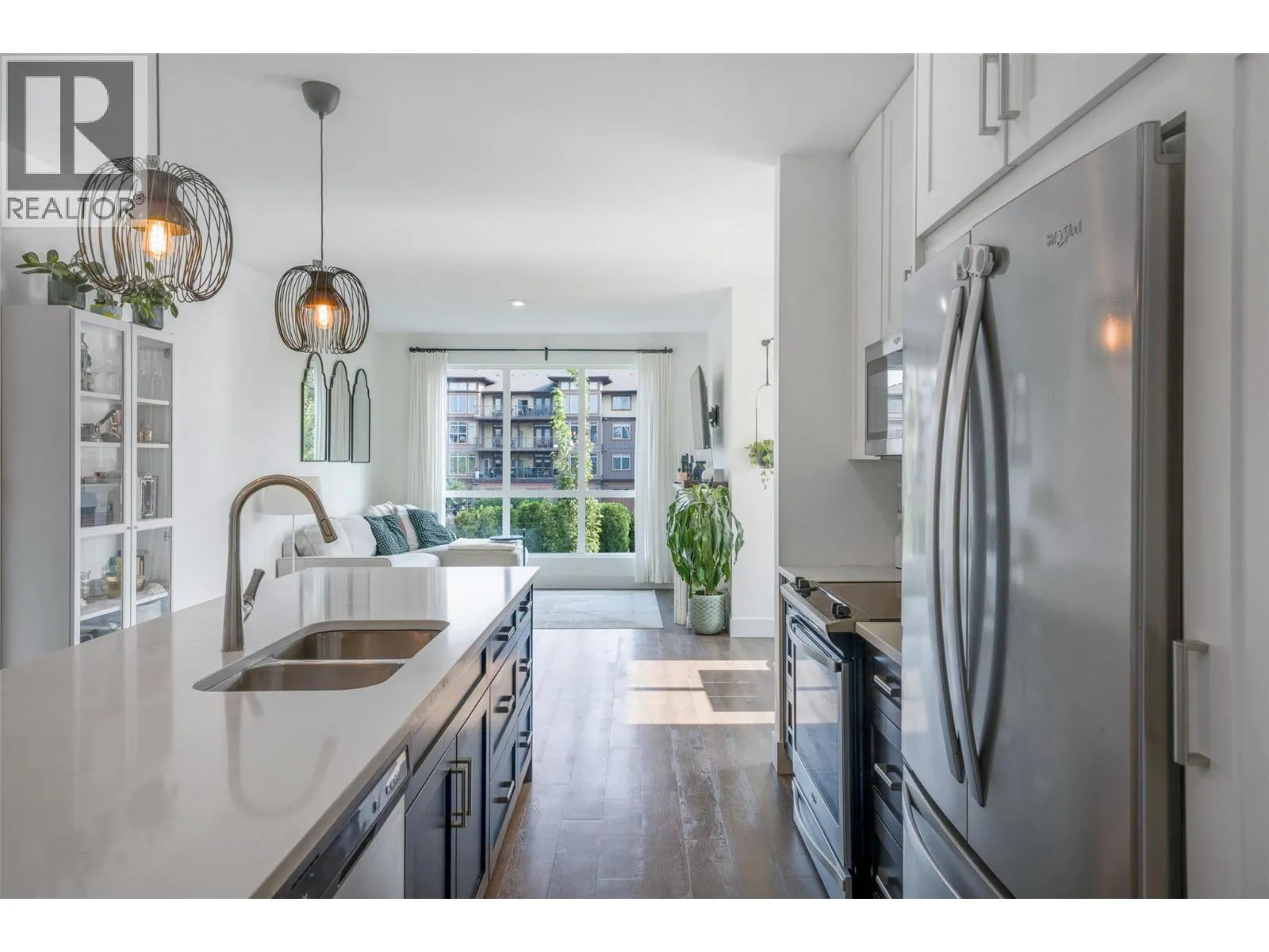+"PublicRemarks": "Convenience meets location with this bright 3 bedroom condo at Gellatly Parc! Located just steps to the lake, Gellatly waterfront, West Kelowna Yacht Club and Glen Canyon Regional Park, this bright, corner unit blends the best of Okanagan less than 10 minutes away to shopping, restaurants, wineries and groceries! Inside, you'll find a vibrant, open floor plan spread over approximately 1230 sqft of living space. The kitchen offers a large island with stainless steel appliances and opens to a sun-filled living room with separate dining area for entertaining. Step outside to an oversized balcony with peek-a-boo lake views—perfect for morning coffee, evening sunsets or relaxing with friends after a day at the beach or the CNR/Gellatly Aquatic wharf! The primary bedroom is generous in size, featuring a walk-through closet and a 4-piece ensuite with dual vanities and a glass shower. Two additional bedrooms provide flexibility for family, guests or a dedicated home office space, while a second 4-piece bathroom and a large utility closet off the entry add practicality and storage. This pet- and rental-friendly building makes an excellent investment or full-time home for 1st time buyers, downsizers or young families! Enjoy 1 common property parking stall, just 10 mins up the hill to Westbank town Centre, Big Box Stores & Aquatic Centre & Dog Beach. Have something to sell? Sellers may consider a house on trade! Move in and enjoy endless recreation at your doorstep! (id:62650)"