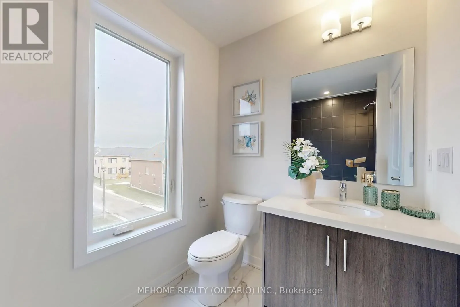 +"PublicRemarks": "An exceptional opportunity to own a brand new, premium corner lot townhome offering 4 bedrooms and 3.5 bathrooms, thoughtfully designed with abundant natural light from over 20 Oversize windows. This home includes a double car garage plus additional driveway parking space, along with 2 balconies for seamless indoor-outdoor living. The ground level features a private bedroom with a 3-piece ensuite, ideal for guests, extended family, or a home office. The main living level showcases an expansive great room with walkout to a covered balcony, perfect for relaxing or entertaining. The chef-inspired kitchen is enhanced with stone countertops, an undermount sink, deep upper cabinetry, a dedicated microwave cabinet, gas line, chimney-style hood fan, and ample storage, with a second balcony just off the dining area-ideal for BBQs. Extensive upgrades include CAT6 wiring throughout, additional electrical outlets, island lighting rough-in, bidet-ready electrical in the primary ensuite, and upgraded plumbing including a fridge water line. Bathrooms are elevated with custom tile selections, stone countertops, shower niches, spotlighting, tiled shower ceilings, and premium finishes throughout. Stylish upgraded stair railings further enhance the modern aesthetic. The upper level is anchored by a spacious primary retreat featuring a walk-in closet and a spa-inspired ensuite with a glass shower. Two additional bedrooms and a beautifully finished main bathroom complete this floor. The highlight of the home is the spectacular 737sqft rooftop terrace, upgraded with lighting, electrical outlet, and hose bib-offering unobstructed 360C views, including downtown Toronto on clear days, and the perfect setting for summer entertaining. Situated in the highly sought-after Union Village community, surrounded by parks and trails, close to top-ranked schools, and minutes to Unionville GO, Hwy 404, and 407. Approx. $100,000 builder upgrades, this is a rare turnkey home that truly checks every box. (id:62650)"