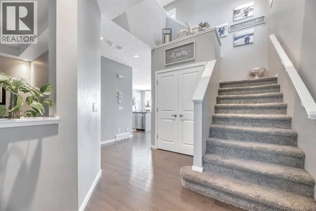 +"PublicRemarks": "Welcome to a stunning WALKOUT and FORMER SHOWHOME BACKING ONTO the Blue Devil Golf Course that can be enjoyed from the FULL DECK spanning the entire width of the home along with the eating area, great room, the walkout level with CONCRETE PATIO, and the peaceful primary bedroom. The home is over 2200 sq. ft. and features a front flex room, large enough to have a dining table or make a great office with elegant COFFERED ceilings. Gleaming maple HARDWOOD floors, POTLIGHTS galore, and a big, bright MODERN KITCHEN featuring an island for prep with lighted accent shelving and a pantry wall - loads of cabinetry! The spacious primary features a tray ceiling, comfort height vanity with dual sinks, a corner soaker tub and separate shower. The generous walk in closet is conveniently attached to the UPSTAIRS LAUNDRY room. Separating the primary from the two additional bedrooms and secondary full bath is a CENTRAL BONUS ROOM with 2 openings and a niche wall in the hallway. Very cool for a media or play room! Additionally, there is a BUILT IN TECH CENTRE/DESK - so many places for activities! This home comes complete with stainless steel kitchen appliances and front load washer and dryer, BUILT IN SPEAKERS with locations throughout the home, knockdown ceiling texture plus a gorgeous full height tiled FIREPLACE with floating hearth as well as CENTRAL AIR Conditioning and CENTRAL VAC SYSTEM. Appreciate the BRAND NEW WALKOUT basement with 4 pc bath, rec room and sizable bedroom to finish this awesome home! Check out this LOCATION - With Fish Creek Park’s trails and pathways, Lake Sikome, schools, and shopping nearby, this is an unbeatable lifestyle in one of Calgary’s most sought-after communities. This gorgeous, well kept home must be seen! (id:62650)"