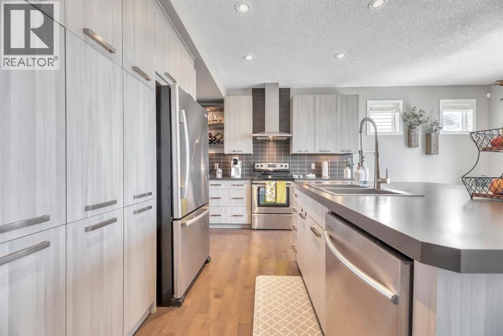 +"PublicRemarks": "Exceptional location, fronting onto a 50' promenade park and steps to the Bow River. This stunning like new home is located in the community of Wolf Willow, offering a contemporary and sophisticated open concept design that maximizes space and natural light. The main level seamlessly combines the living room, dining area, and kitchen, creating a welcoming area that is great for entertaining or relaxing with family and friends. The kitchen is a standout featuring quartz countertops, white European style cabinetry, a coffee bar credenza and stainless steel appliances including a bar fridge. The main level also includes a powder room, nicely tucked away at the front of the home. Upstairs, you'll find two well-appointed bedrooms and a convenient bonus room. The primary bedroom comes complete with a walk-in closet, offering ample storage, and a private, upgraded 3-piece ensuite bathroom. There is another 4-piece bathroom on this floor, serving the other bedroom and bonus room (currently used as a gym), along with a stacked laundry pair and storage. The basement is fully finished with a massive recreation room along with a corner den/gaming area, a comfortable bedroom and another 4 pc bath. Outdoors, you can enjoy the privacy of your south facing deck area complete with 2 shaded pergolas, gas line bbq and pet safe artificial turf. Additionally, the property features a two-car detached garage and is fully fenced and beautifully landscaped. Outdoor enthusiasts will love this location, just steps away from Fish Creek Park as well as a Dog Park, and close to the Bow River and Blue Devil Golf Course. Don’t miss your opportunity to make this wonderful property your new home! (id:62650)"