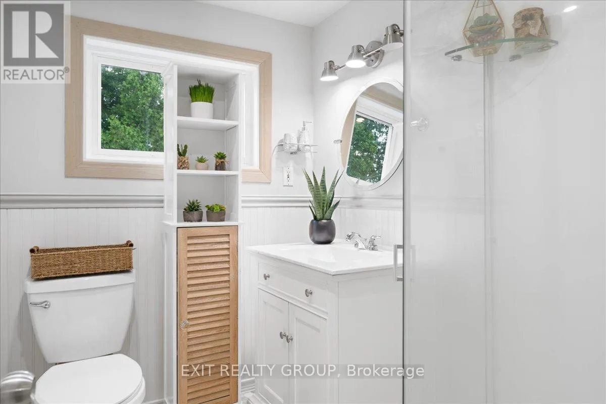 +"PublicRemarks": "This beautiful 3-bedroom, 2-bathroom, 1.5-storey home with a 1.5-car garage is perfectly nestled on 3.95 acres of land. The property offers unparalleled privacy, with your very own private pond, enchanting trails, and a charming bunkie - truly an outdoor enthusiast's dream. The home itself has been thoughtfully updated to create a serene and welcoming atmosphere. Inside, you'll find timeless hardwood floors and high baseboards throughout, a spacious kitchen, formal dining room and all three bedrooms offer stunning views of the surrounding natural landscape. Comfort is key, with a jetted tub in the main bath and a sleek glass shower in the upstairs bathroom. The basement provides an excellent opportunity for additional living space, with a separate entrance and laundry hookups. Close to schools, shopping and all amenities that Trenton has to offer and only 10 minutes to CFB Trenton. This is a unique opportunity you won't want to miss! (id:62650)"