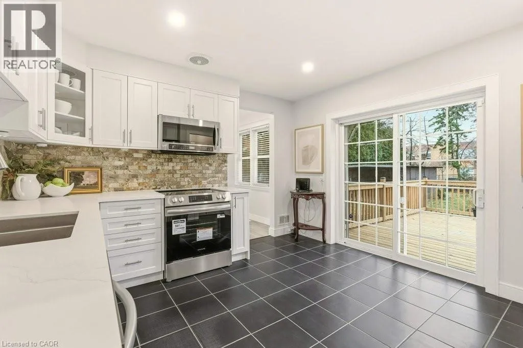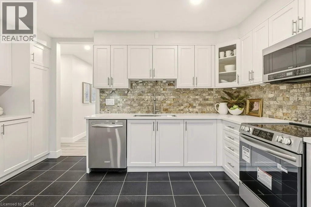 +"PublicRemarks": "Gorgeous 3+2 Bed, 3 Bath Bungalow w/New Basement Suite on a premium 75' x 140' lot backing onto School grounds. This beautifully updated spacious home, in family friendly S. Central Burlington, offers the flexibility of two separate Living spaces & Must Be Seen! Updated Main Level features new easy maintenance wide plank Laminate floors, LED Potlights, all new interior Shaker style Doors w/brushed nickel Hardware & fresh neutral paint through-out. Family sized Kitchen with new White soft-close cabinet doors, Quartz counters, s/s Appl's & walk-out to New 17' x 12' Deck w/BBQ gas line for easy Outdoor Living & Entertaining. Large, bright, o.c. Living & Dining Rooms make hosting a joy! Three spacious Bedrooms, a large 4 pc Bath & convenient main floor Laundry complete the main level. The Lower Level features a stunning, Professionally Designed, separate 2 Bedroom Suite that has just been completed. The gorgeous full Kitchen features new S/S Appl's, a B-I Microwave/Range Hood vented to outside, Designer Backsplash, Quartz counters & soft close cabinetry with brass details. Bright, Open Concept L.R./D.R. w/wide plank luxury vinyl, LED Potlights & new oversized windows. Private Primary Suite w/luxurious 3 pc Ensuite w/heated floors & his/hers Closets, a 2nd Bedroom w/luxe 3pc Bath w/heated floors & laundry w/new Washer & Dryer. The Suite is not only beautiful, extensive work was completed to bring the space up to current standards; original plumbing under the floor was removed & replaced, materials were added to sound proof the basement ceiling, & windows were replaced to current code for Egress & Efficiency. Single Garage w/inside entry plus 4 car Dbl. Drive. Private, Fenced yard w/Workshed. Fantastic location just steps to highly ranked Schools & transit, a short stroll to shopping, trails & the Burlington Mall. Just a short drive to numerous top notch Sports & Rec. facilities, the Lakefront & D.T. Shops. (id:62650)"